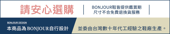 ・如欲退貨,您可透過LINE禮物 / 我的 / 我的禮物 / 點擊商品 /「洽詢訂單問題」 提出取消要求給供應商。 ・本商品無法提供換貨服務,如需其他商品請您重新購買 【商家資訊】公司名稱:日安鞋業有限公司 地址:台北市大同區承德路三段8巷4號1樓統一編號:24564534 負責人:黃志成 客服電話:0225954565 客服信箱:service@bonjour.tw 客服時段:周一至周五 09:00~12:00、13:30~18:00(六日及國定假日休息)