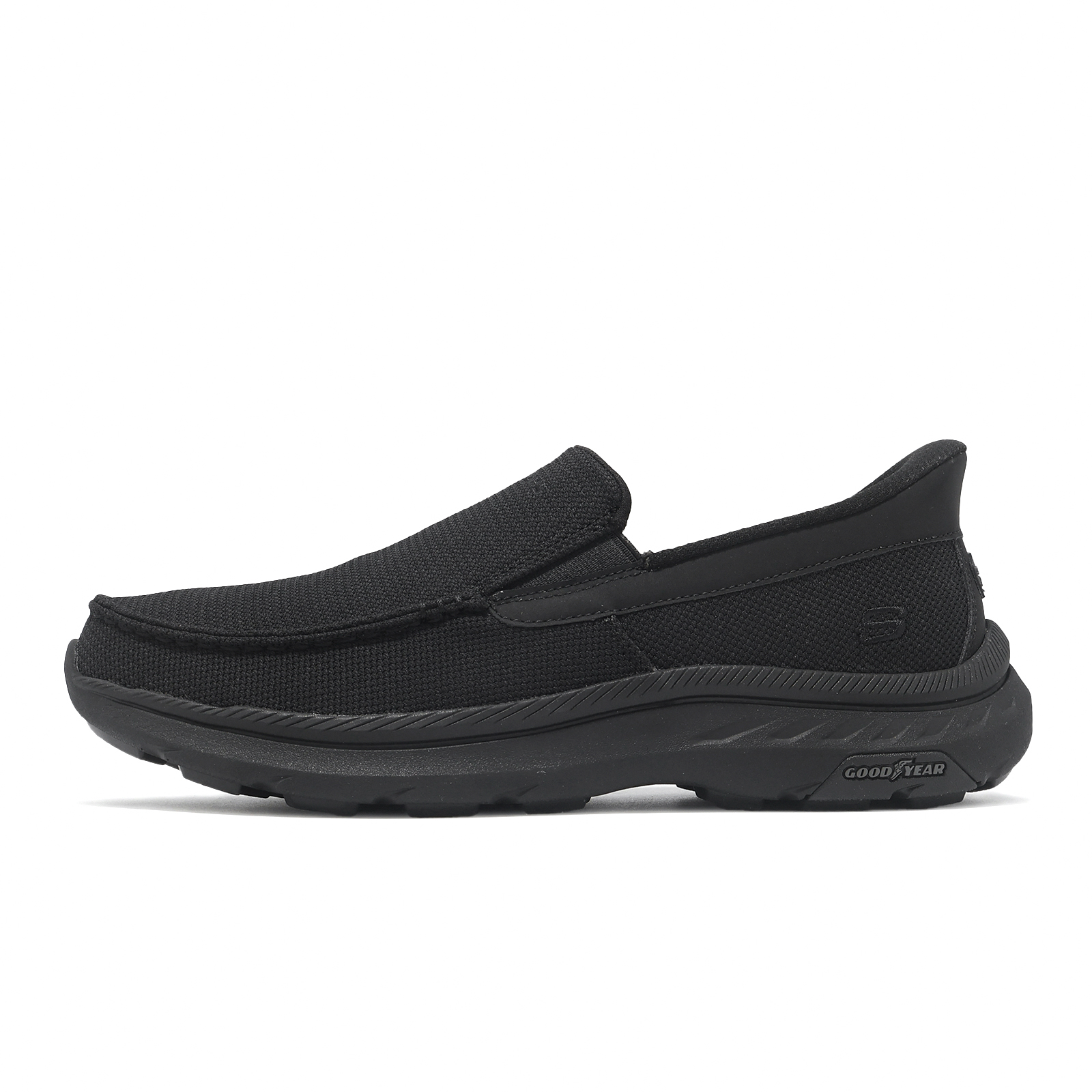 品牌: SKECHERS型號: 205451-BBK品名: Pollard-Wilfred Slip-Ins版型: 版型正常* 融合經典休閒風格與輕鬆舒適,這款無鞋帶款式採用Heel Pillow 鞋跟設計,網眼針織鞋面搭配鬆緊帶拼接,搭配Skechers Air-Cooled Memory Foam 記憶泡棉鞋墊、Memory Arch 記憶拱形鞋墊和耐用的 Goodyear 橡膠外底。