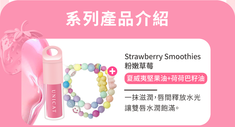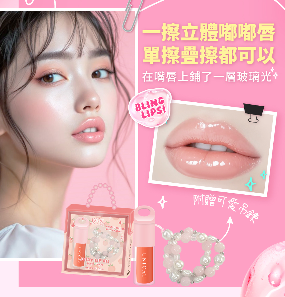 如玻璃般透亮的水光豐盈玻璃唇油🍯,讓雙唇閃耀豐潤,搭配活力感滿滿的多彩蝴蝶結串珠手鍊,一抹上唇、一戴上手,甜美指數瞬間爆表💛用途:滋養修護雙唇,打造自然豐潤的水光感。給予唇部持久潤澤與柔嫩,讓嘴唇閃耀自然光,無論任何唇色皆能完美融合。