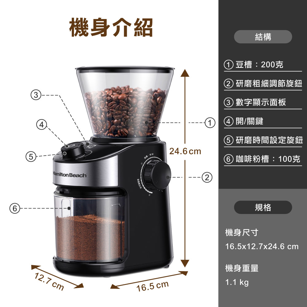 品名:美國 漢美馳 電動磨豆機型號:CG836B內容物:主機 x1、清潔刷 x1、說明/保固書 x1功率:200W電壓:110V/60Hz主機尺寸:16.5長 x 12.7寬 x 24.6高 cm裝箱尺寸:19.2長 x 15.3寬 x 27.4高 cm主機重量:1.1 公斤裝箱重量:1.3 公斤產地:中國保固:總代理公司貨 1 年主機保固(不含配件)BSMI:R39624