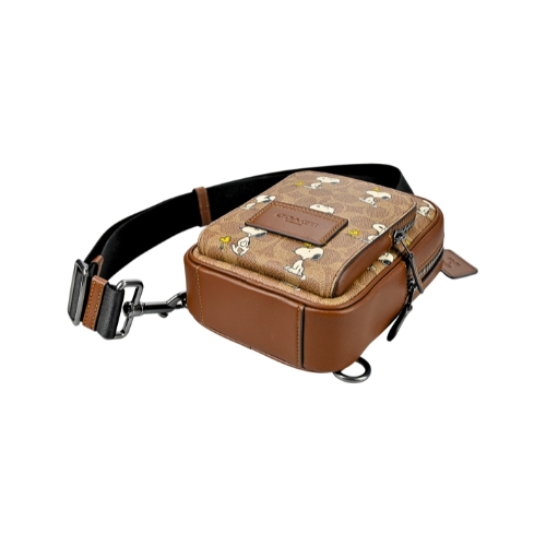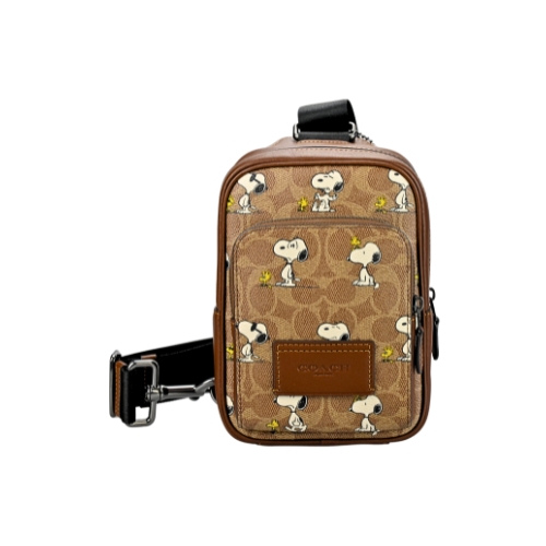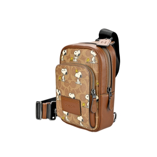 COACH X PEANUTS聯名熱銷新款,經典C LOGO PVC輔以史努比漫畫人物圖印,增添童趣魅力,男士小款背包,包身採率性直式方型並設置正面便利拉鍊口袋,ㄇ型拉鍊開合物品易於拿取,單邊可調式背帶休閒百搭。(圖片包包內iphone 6手機及卡片僅供包款收納空間參考用,不包含在商品內容) ★尺寸:寬14CM高21CM側邊寬8CM,固定式背帶拉合調整★規格:ㄇ型拉鍊開合,內無口袋、正面一拉鍊口袋