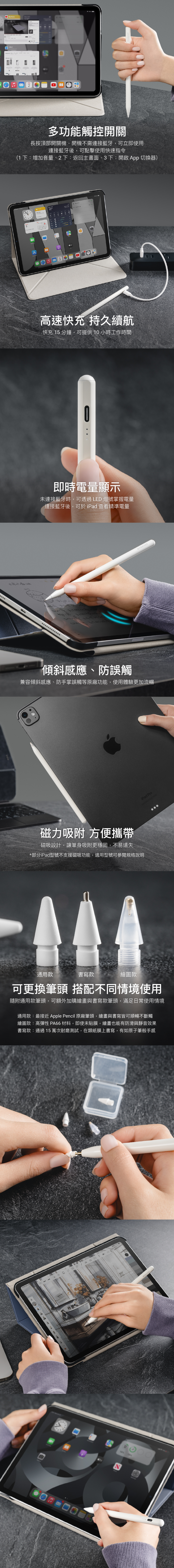磁力吸附,方便攜帶:磁吸設計,讓筆身吸附更穩固,不易遺失(* 適用於最新 2025 年 iPad 及過去所有型號 )