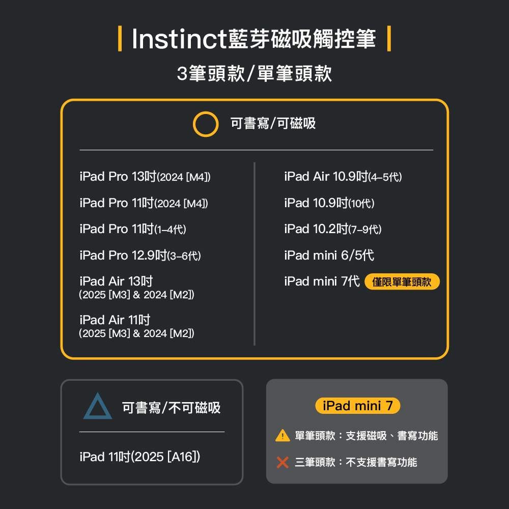 Instinct 磁吸藍牙 iPad 觸控筆 +3款筆頭