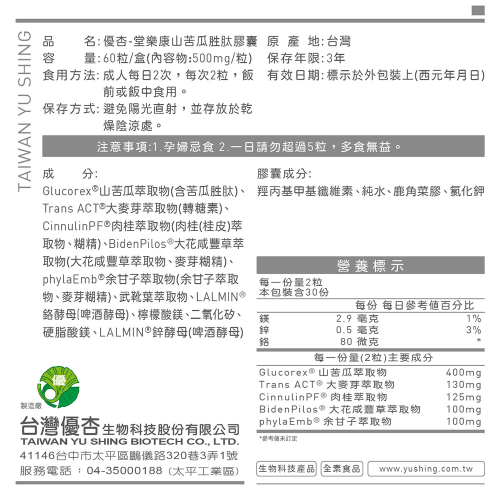 [台灣優杏]優杏-堂樂康山苦瓜胜肽膠囊(60粒/盒)