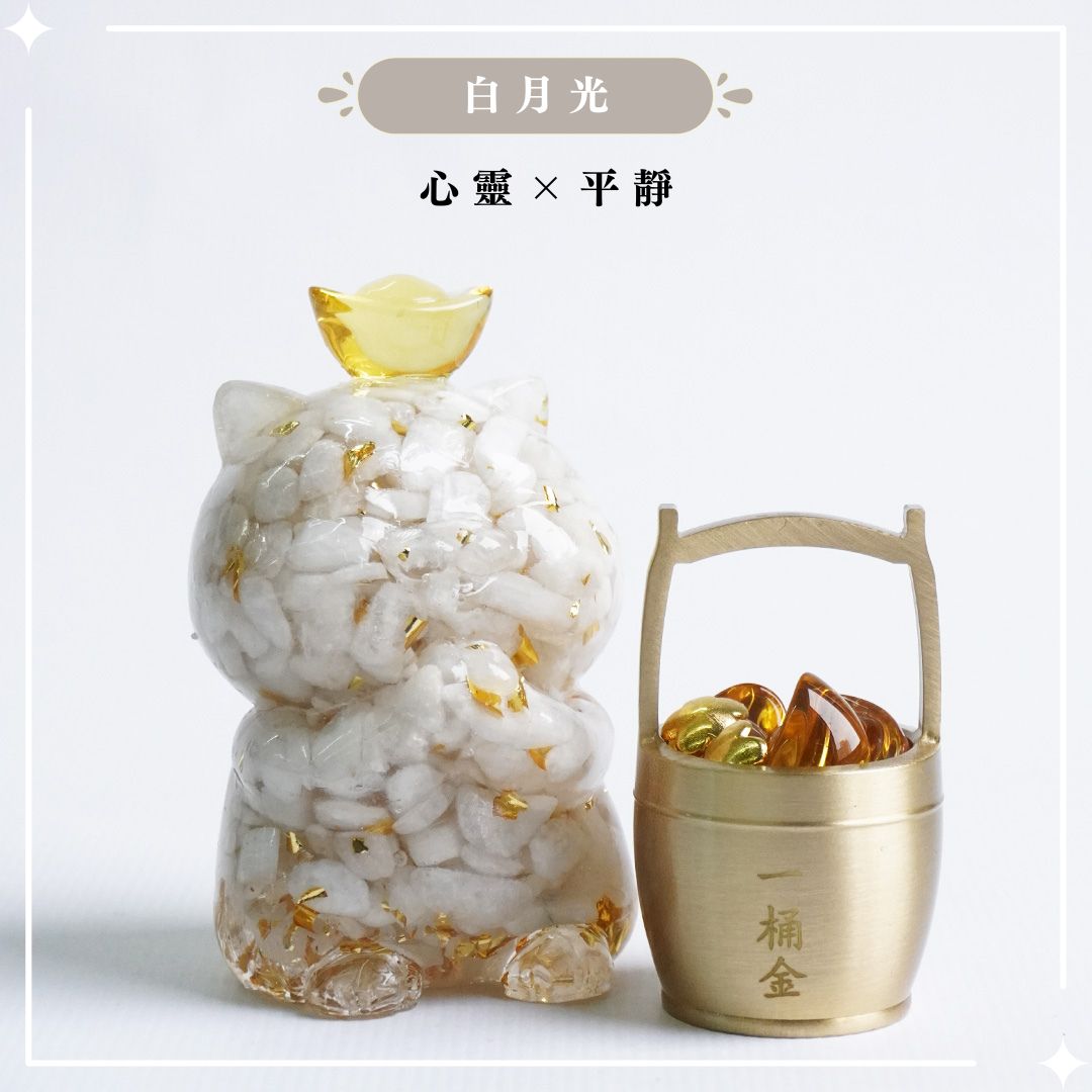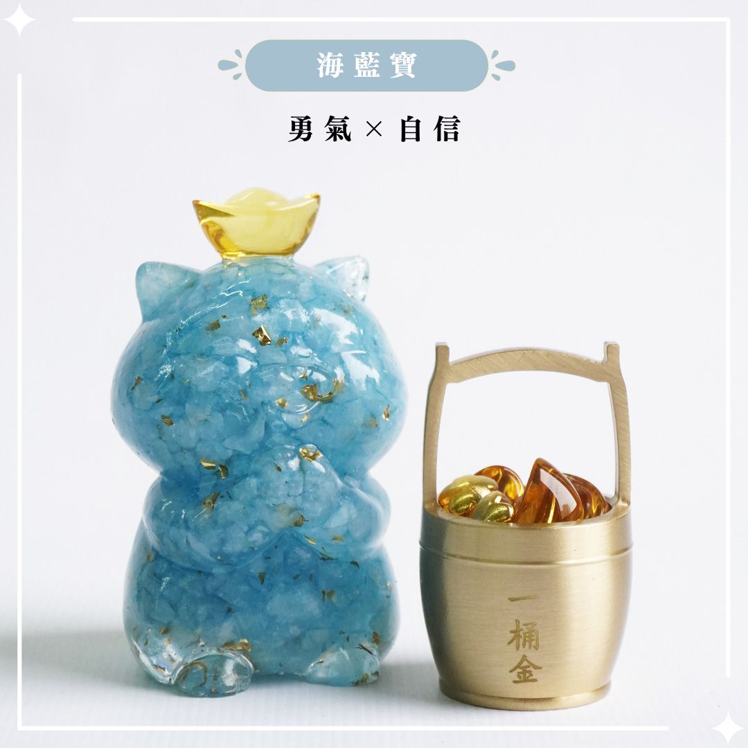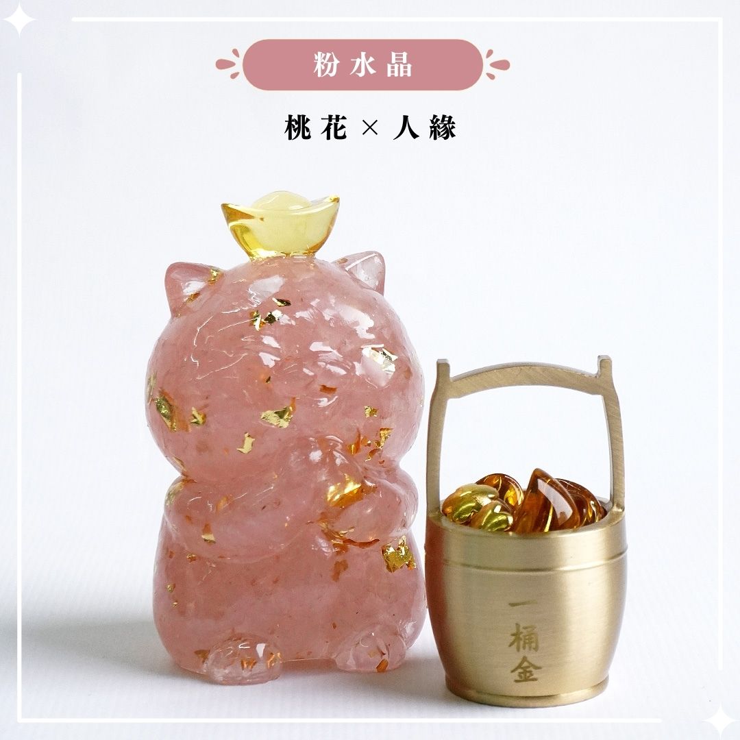 Hourrae 荷萊 招財 事業 金箔水晶 元寶招財貓 天然水晶 水晶碎石 滴膠 粉水晶 紫水晶 海藍寶 黃水晶 一桶金