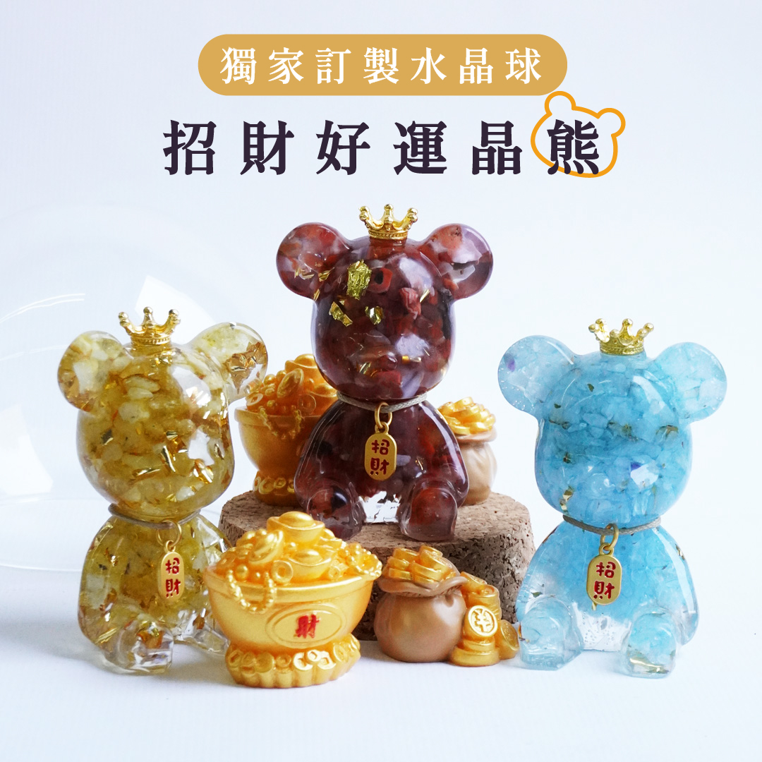 Hourrae荷萊 招財好運水晶球 招財吊牌熊水晶擺件