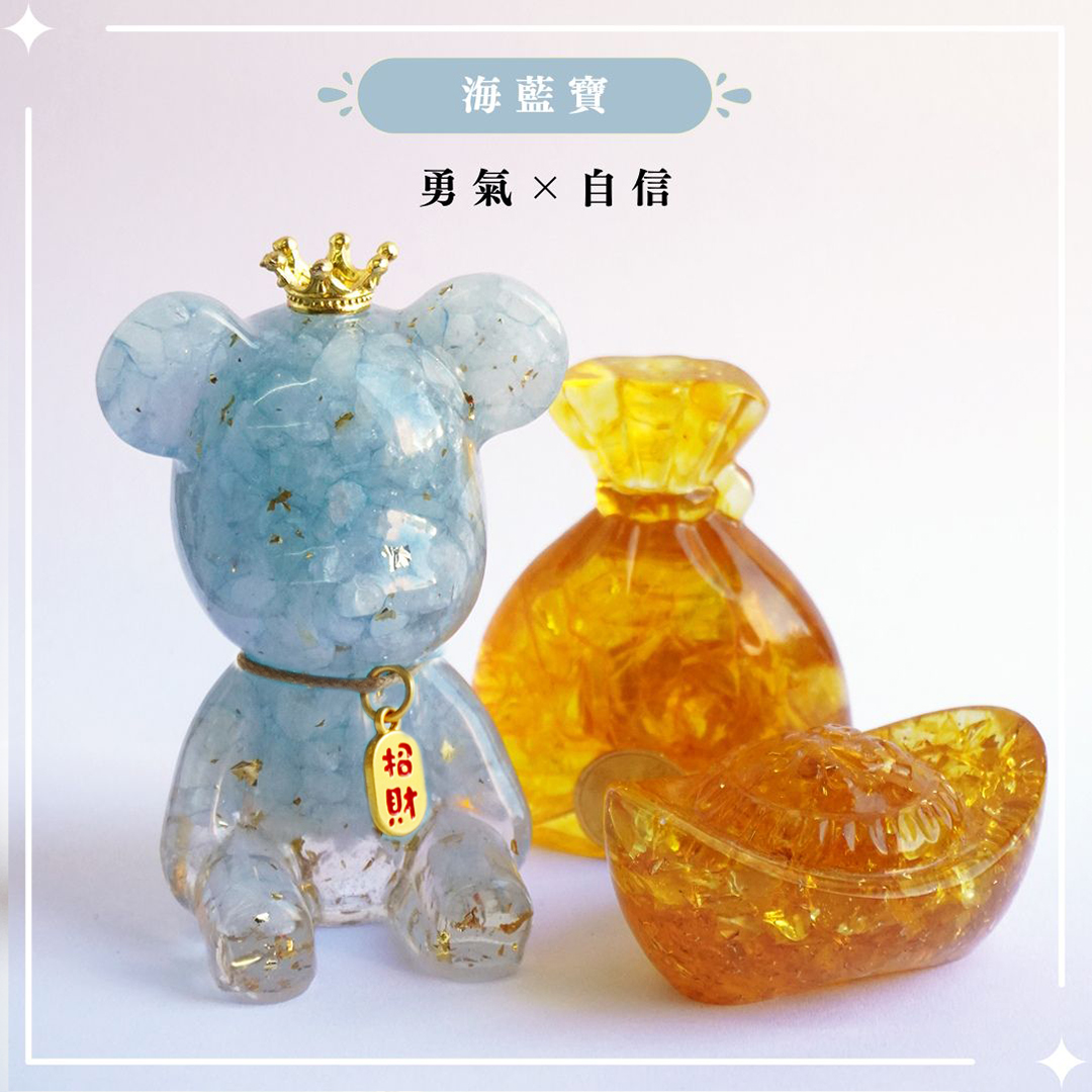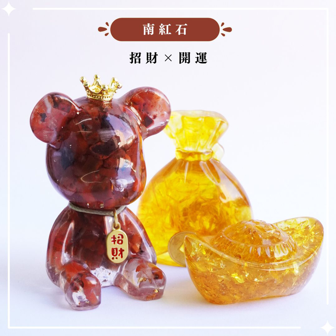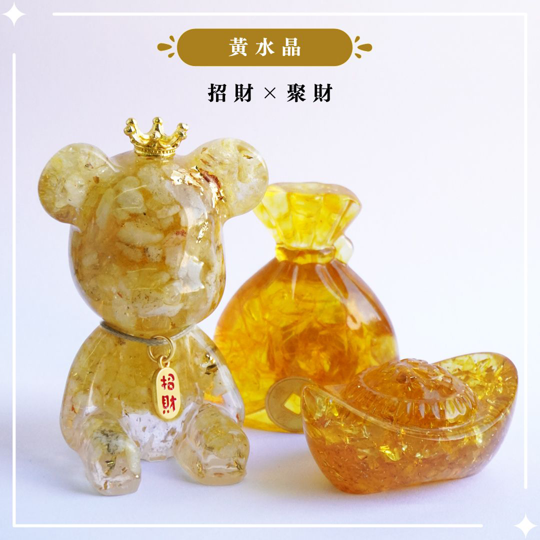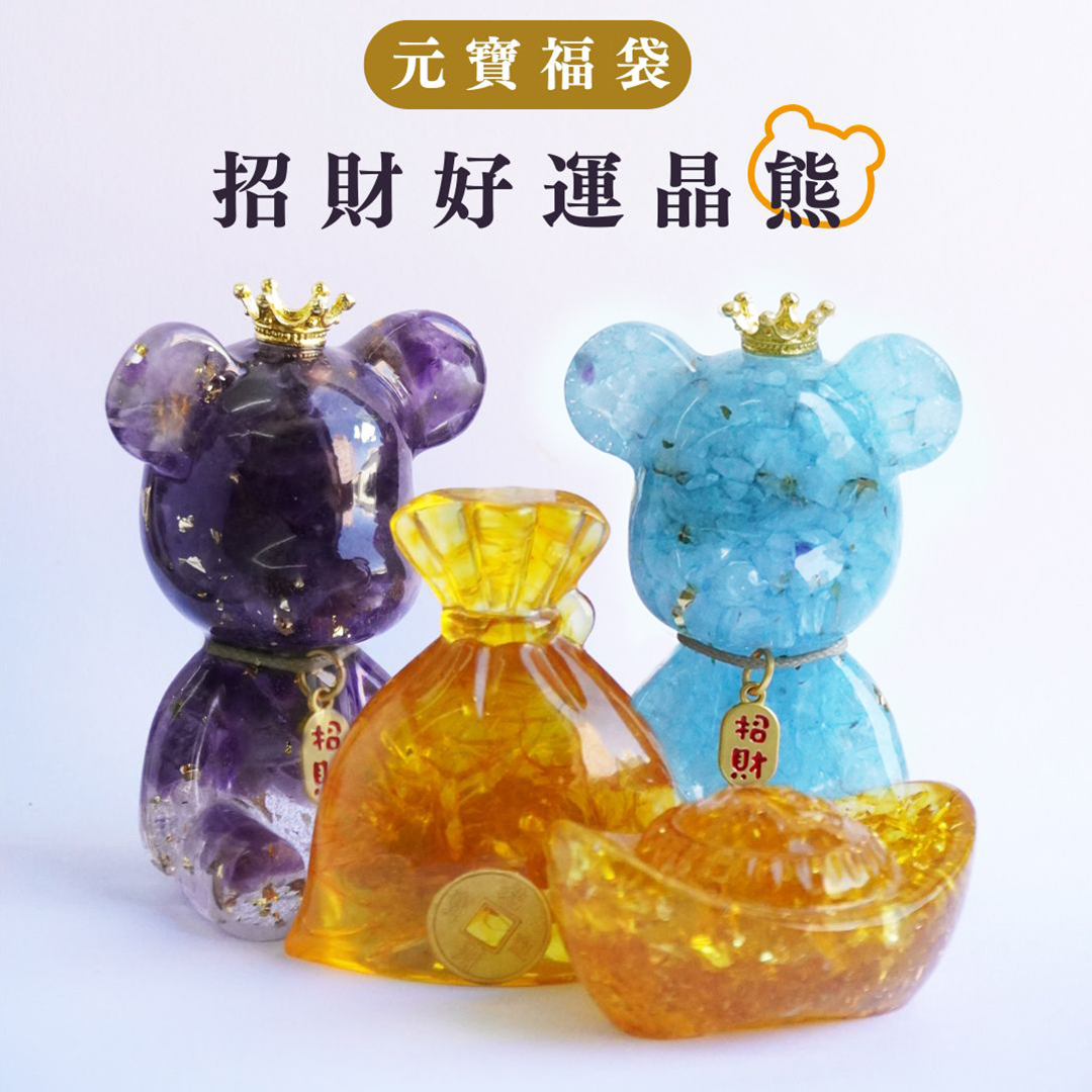 Hourrae 荷萊招財好運晶熊 招財吊牌 水晶擺件 錢袋元寶組合