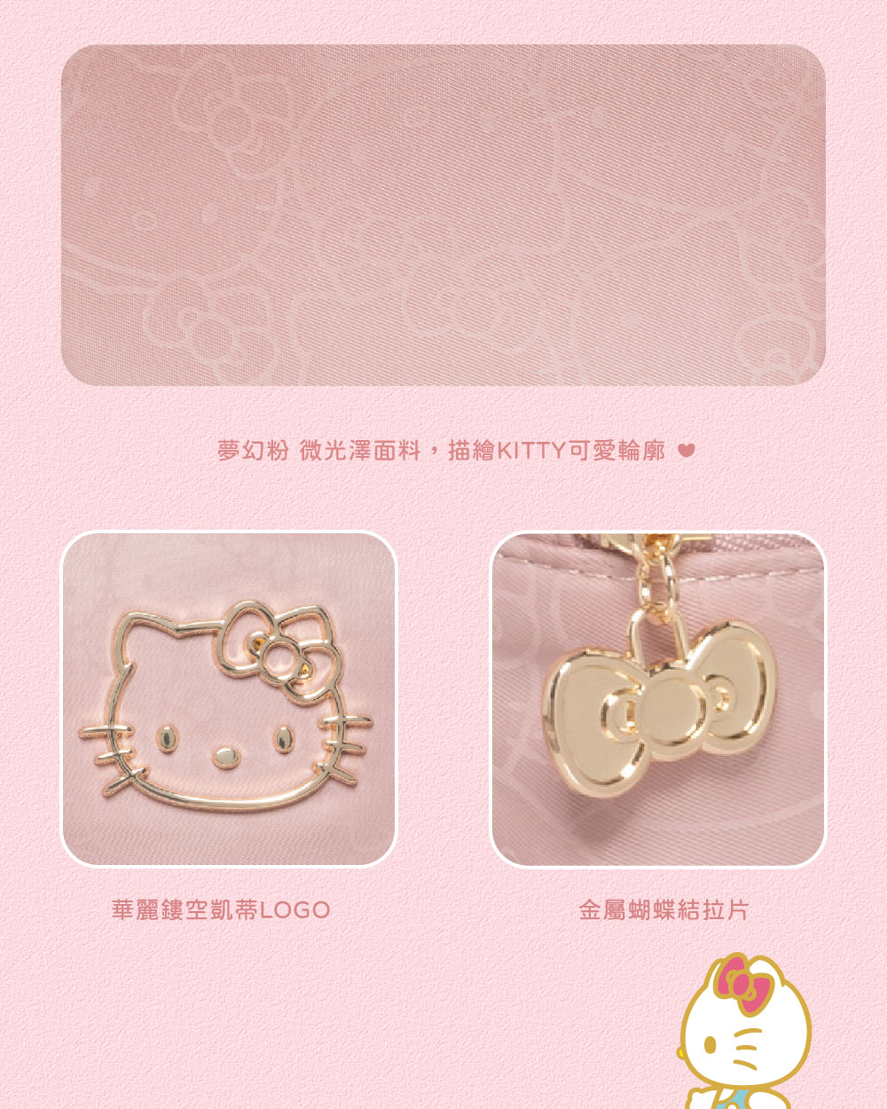 粉微光澤面料閃耀KITTY可愛輪廓