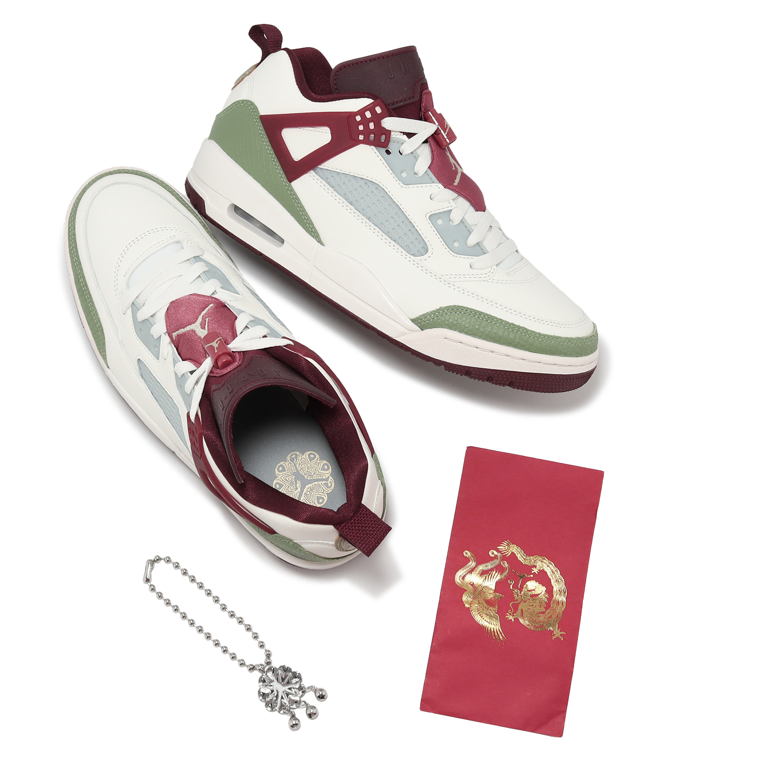 品牌: NIKE型號: FJ6372-100品名: Jordan Spizike Low CNY版型: 版型正常* 以中國新年-龍年回設計靈感,鞋墊內結合中國圖騰,後跟搭配美國製片人 Spike Lee 頭像,彰顯鞋款身分。