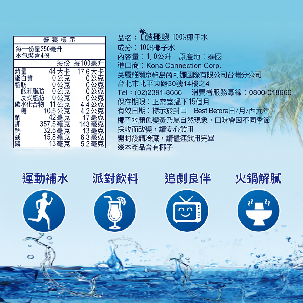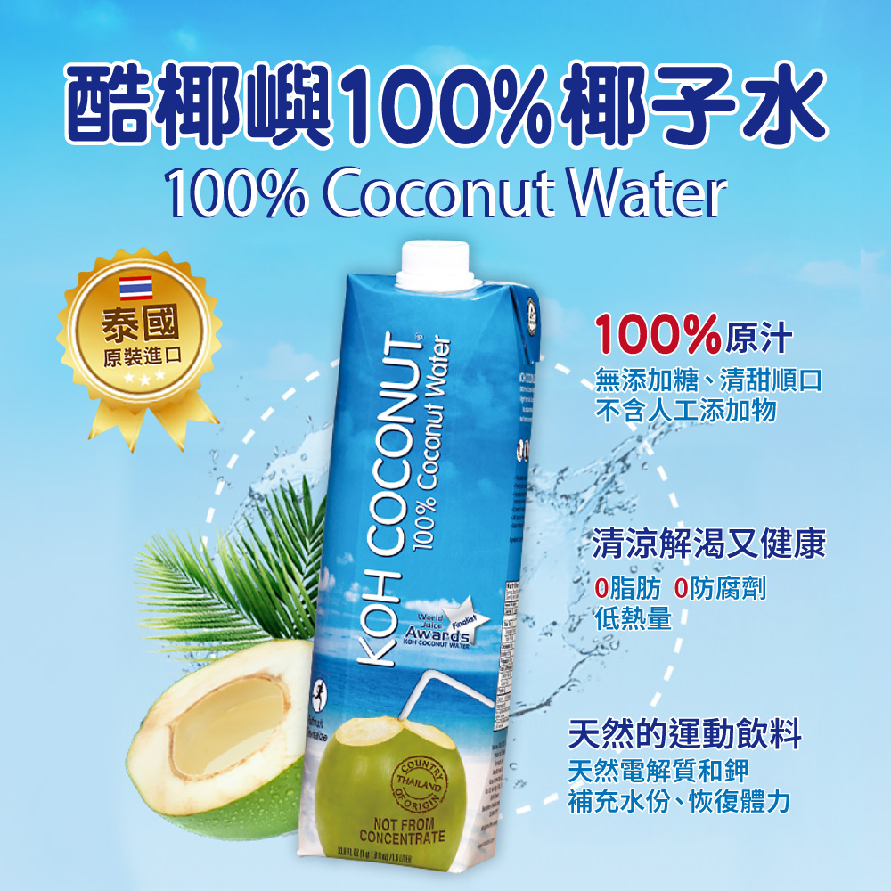 名稱:【KOH COCONUT 酷椰嶼 】100%椰子水 1000mlx1箱 (共12入)