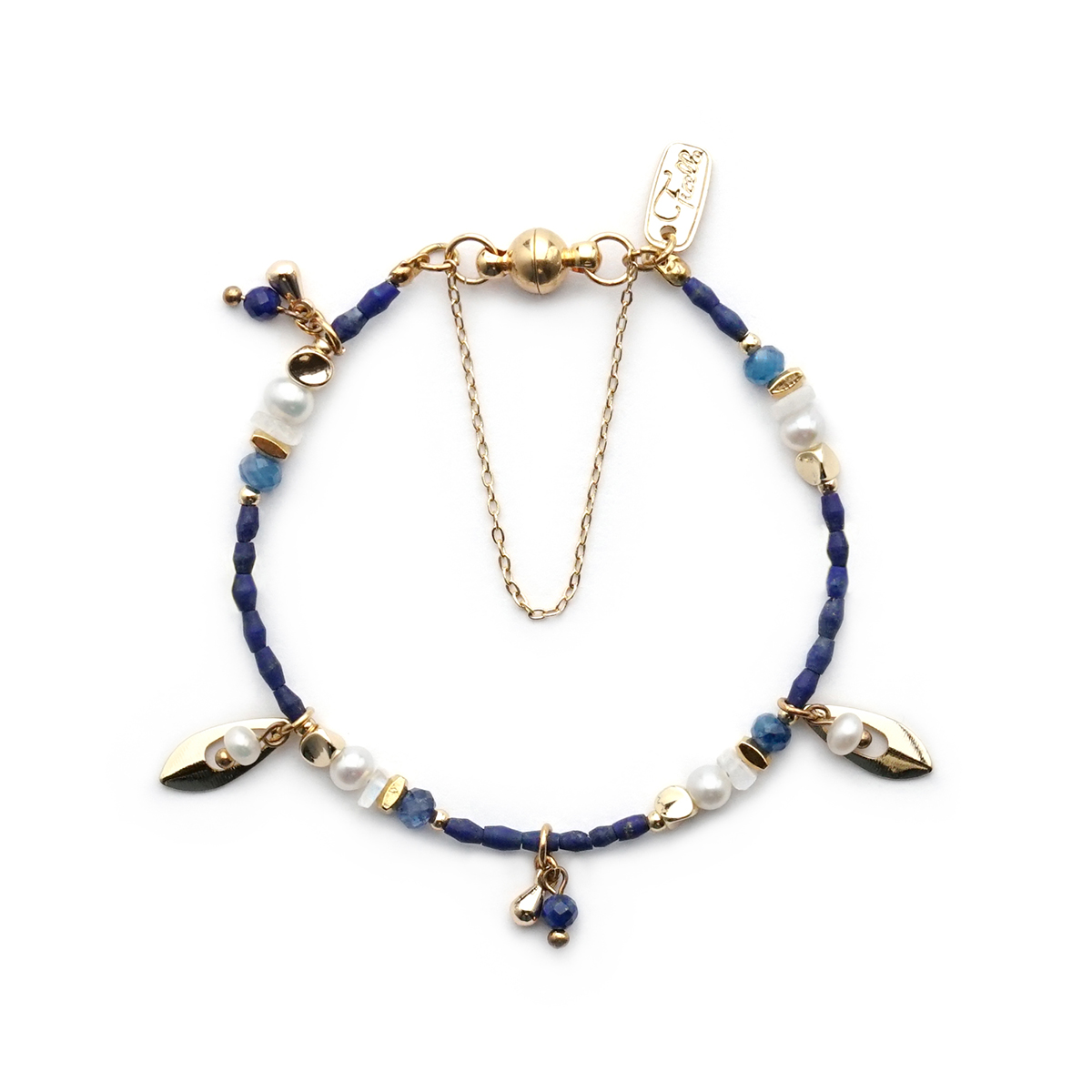 – 商品材質 Product Materials –青金石、月光石、藍晶石、淡水珍珠、黃銅鍍18K金