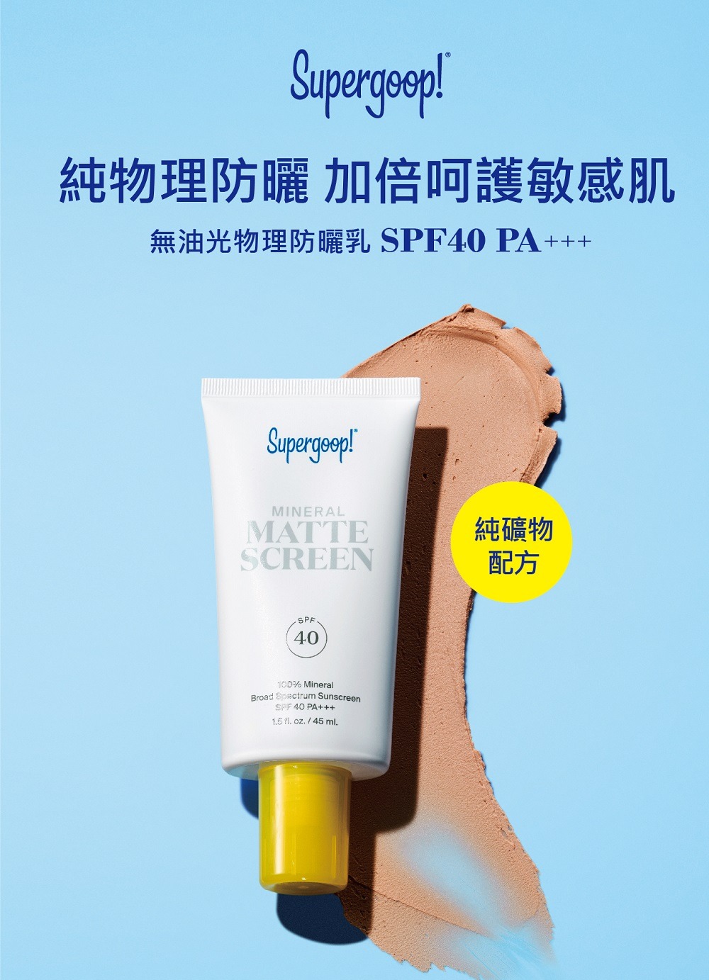 商品內容名稱:【Supergoop】無油光物理防曬乳 PA+++ SPF40 45 ML