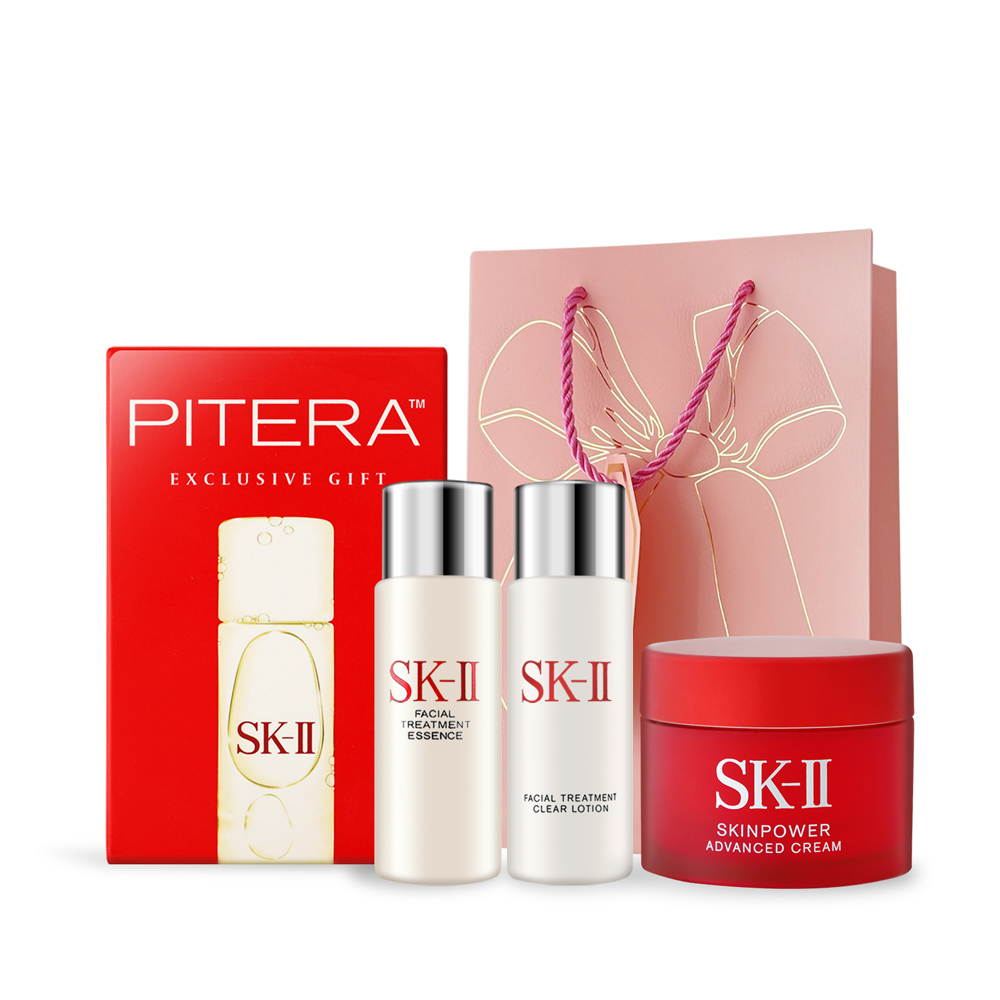 規格:1.SK-II 經典兩件套(青春露30ml+亮采化妝水30ml)-國際航空版2.SK-II 致臻肌活能量活膚霜(15g)-國際航空版3.O'Pretty 歐沛媞 粉色蝴蝶結禮袋(18X23X10cm)