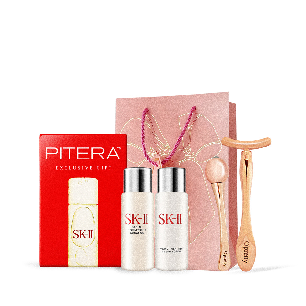 規格:1.SK-II 經典兩件套(青春露30ml+亮采化妝水30ml)-國際航空版2.O'Pretty 歐沛媞 臉部拉提按摩組[T型臉部推推棒+眼部按摩棒-滾珠型]3.O'Pretty 歐沛媞 粉色蝴蝶結禮袋(18X23X10cm)