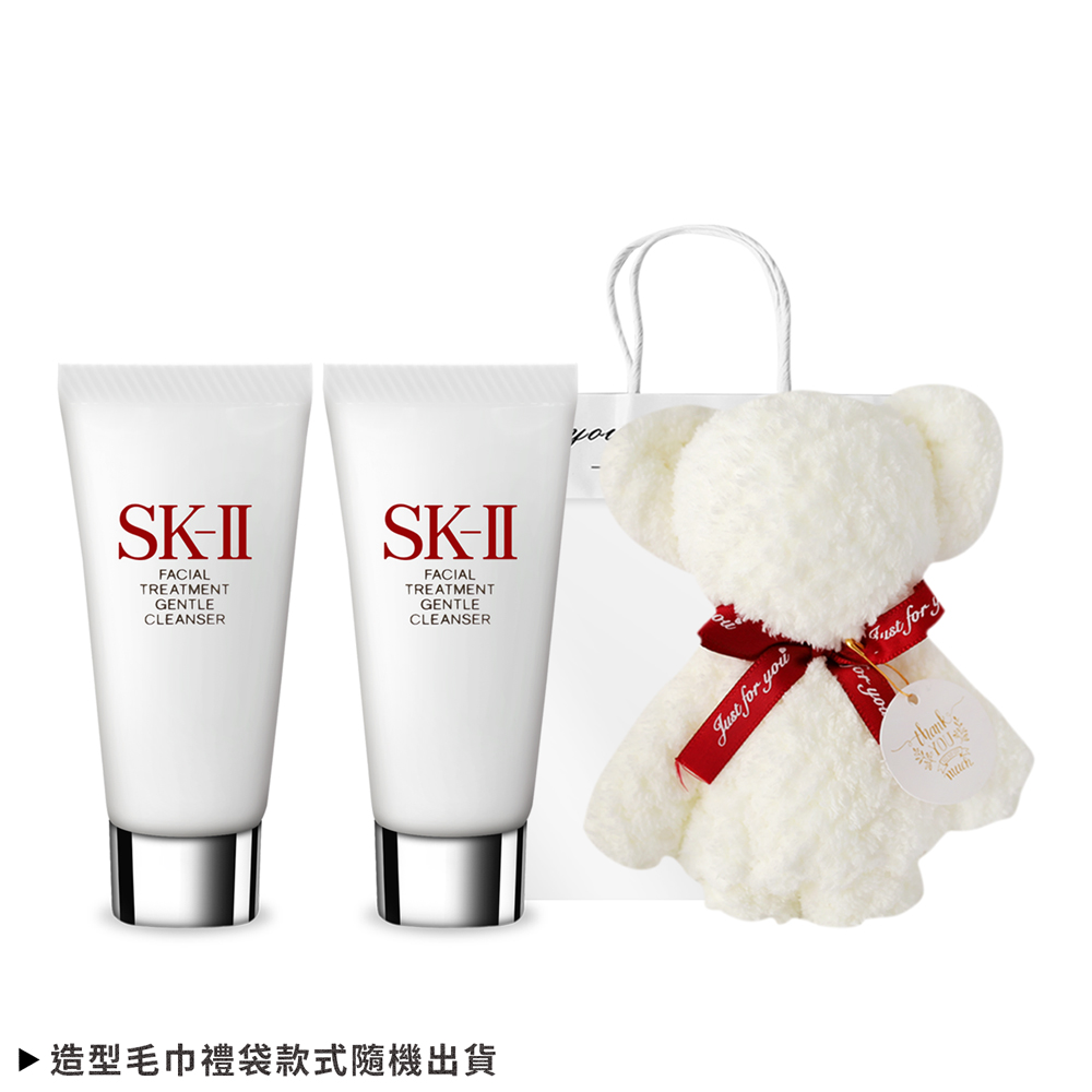 規格:1.SK-II 全效活膚潔面乳(20G)X2-國際航空版2.O'Pretty 歐沛媞 小熊造型毛巾(11X9.5cm)(隨機出貨)