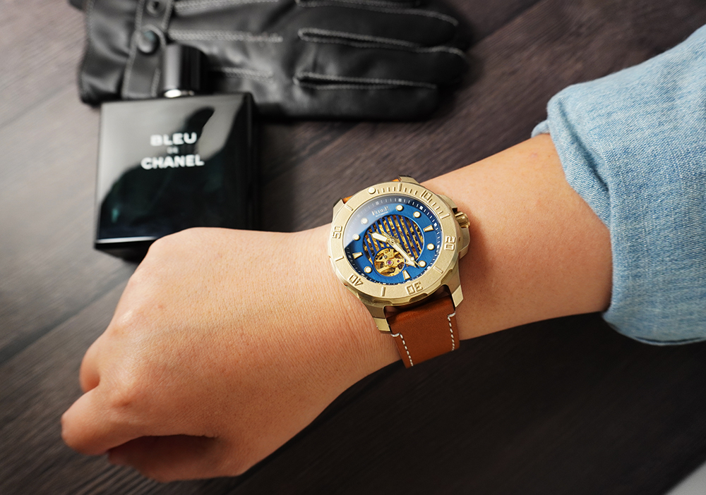 使得每只青銅腕錶皆擁有獨一無二的時光痕跡,同時散發出令人醉心不已的古味。