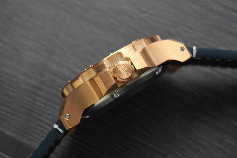 錶殼設計以重潛頭盔為原型,將粗曠的線條以及金屬的質感完美呈現