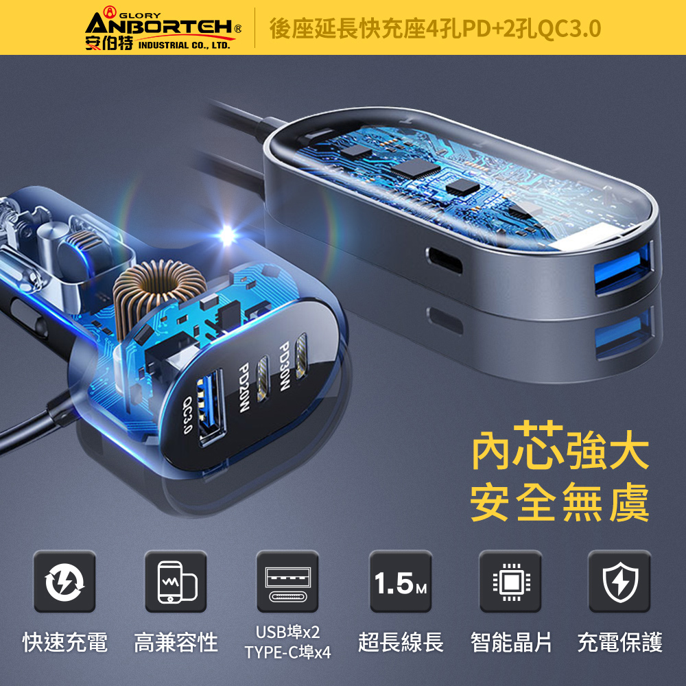 國家認證:BSMI字號R3D197,國家認證安全有保障六孔車充:4孔PD快充+2孔QC3.0快充,6孔可用超長線長:1.5M超長電源線,滿足後座需求適用範圍:12V-24V皆適用,適用範圍廣泛