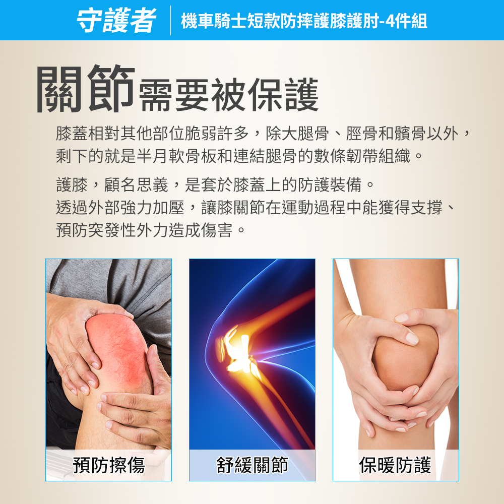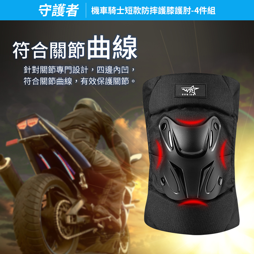 【守護者】機車騎士 短款防摔護膝護肘專為關節設計,完美貼合關節曲線內裡吸汗透氣、外殼堅韌抗撞擊