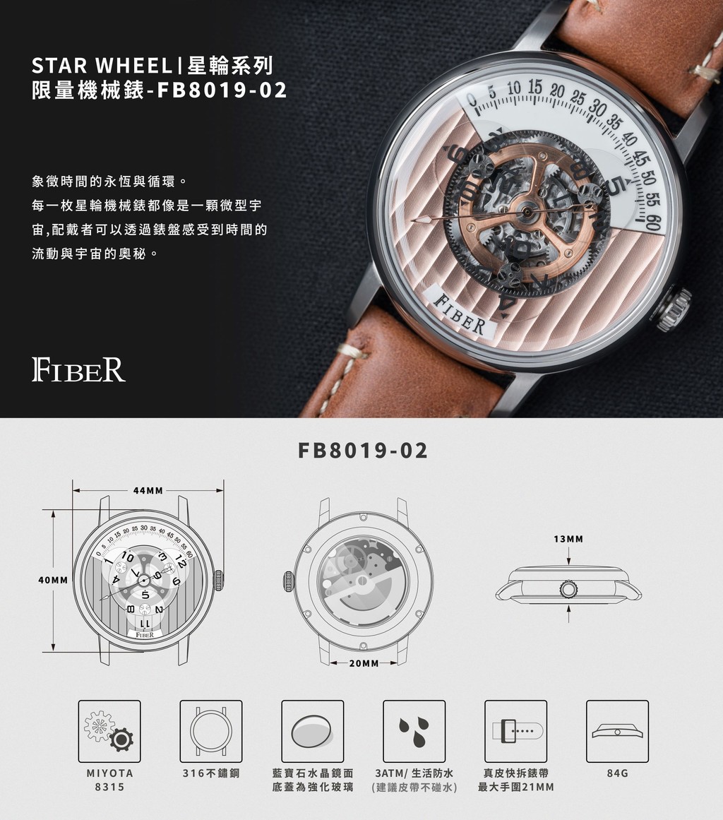 FIBER|星輪|限量機械錶-FB8019-02咖