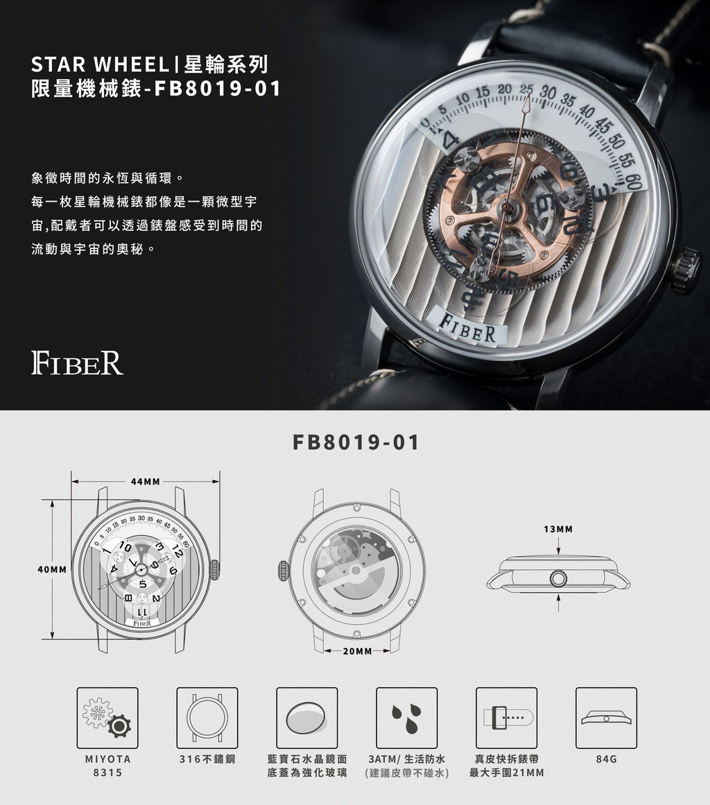 FIBER|星輪|限量機械錶-FB8019-01-黑
