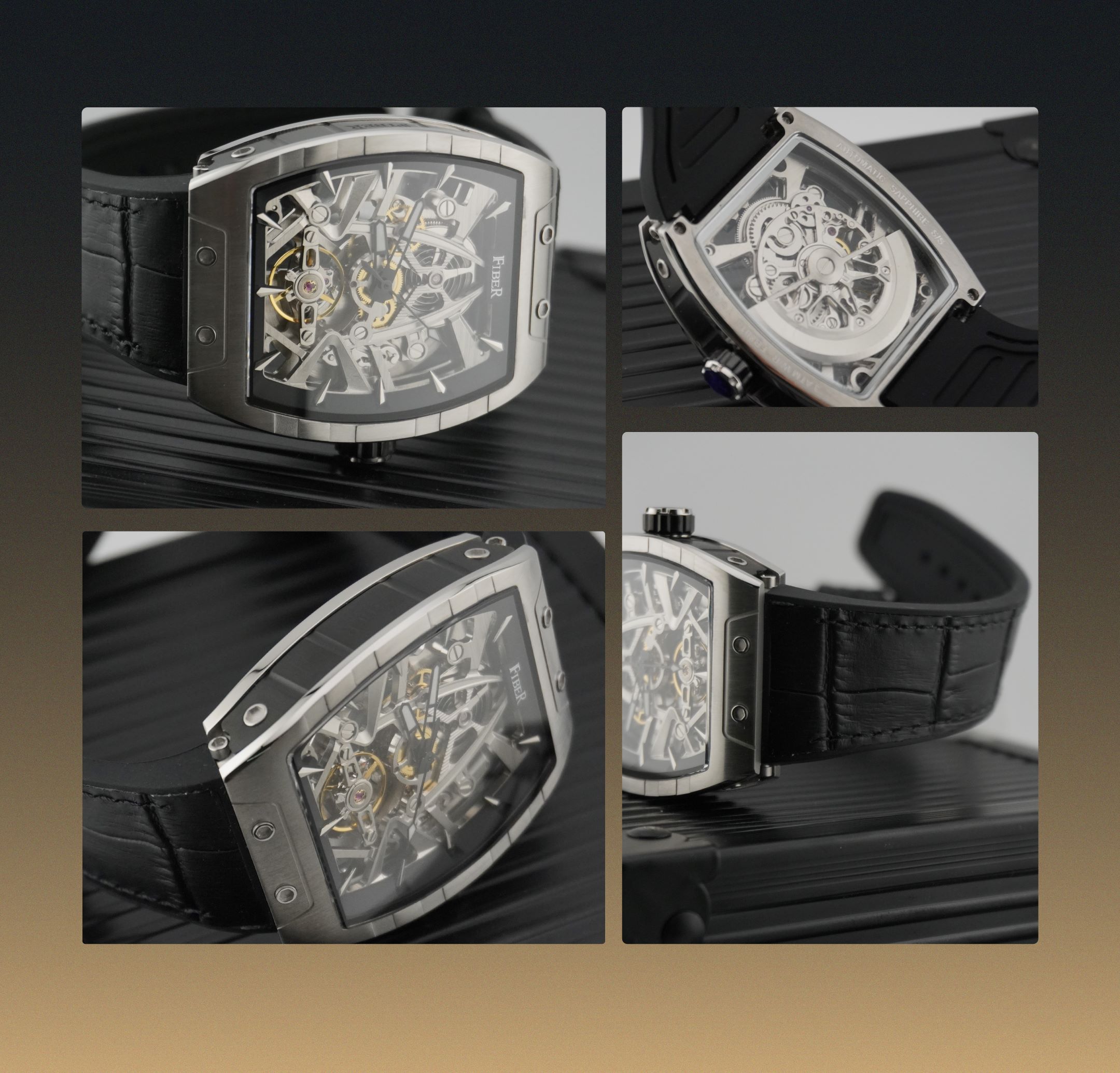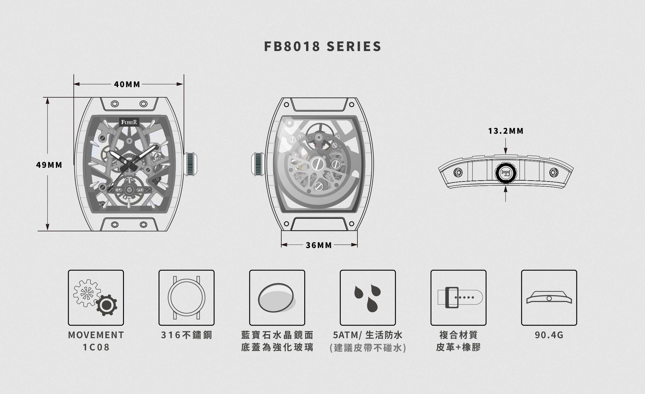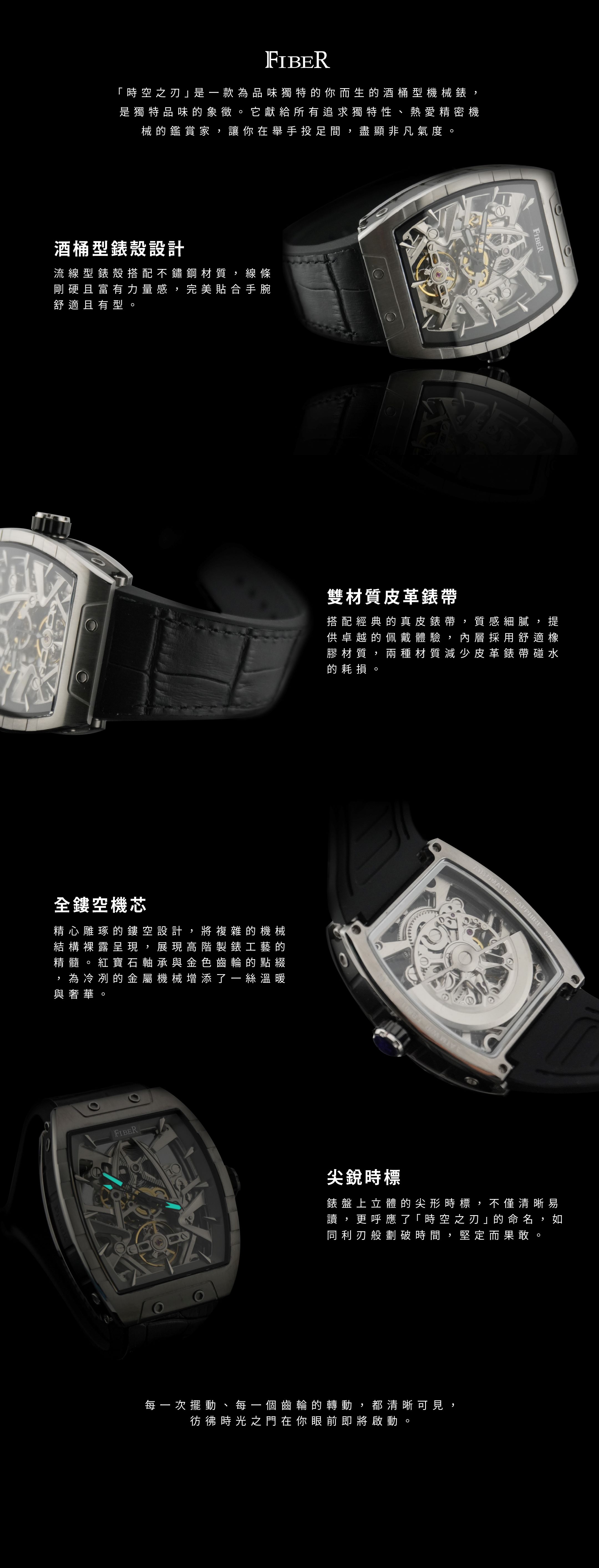 新上市-FIBER|8018.時空之刃|限量機械鏤空錶-銀黑