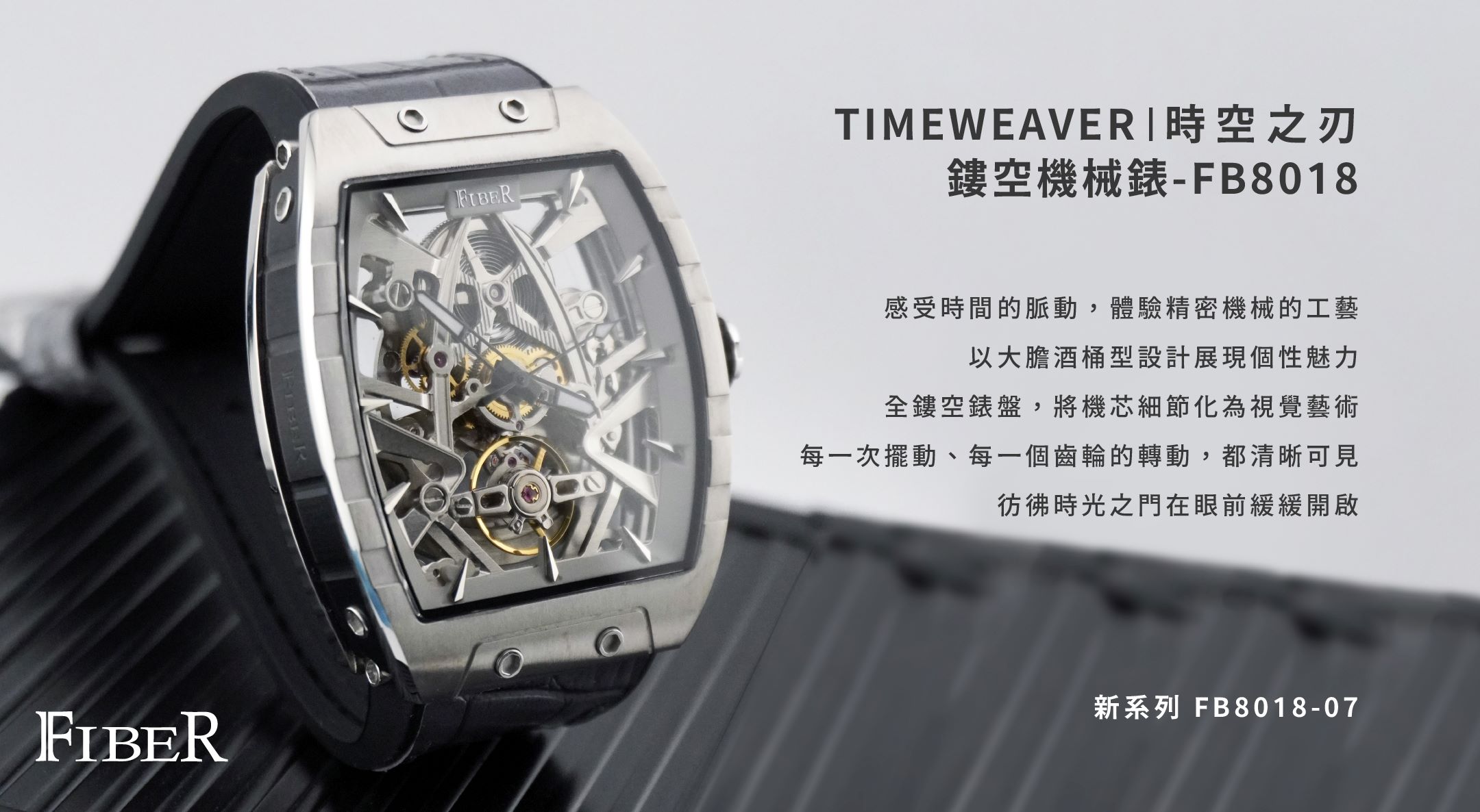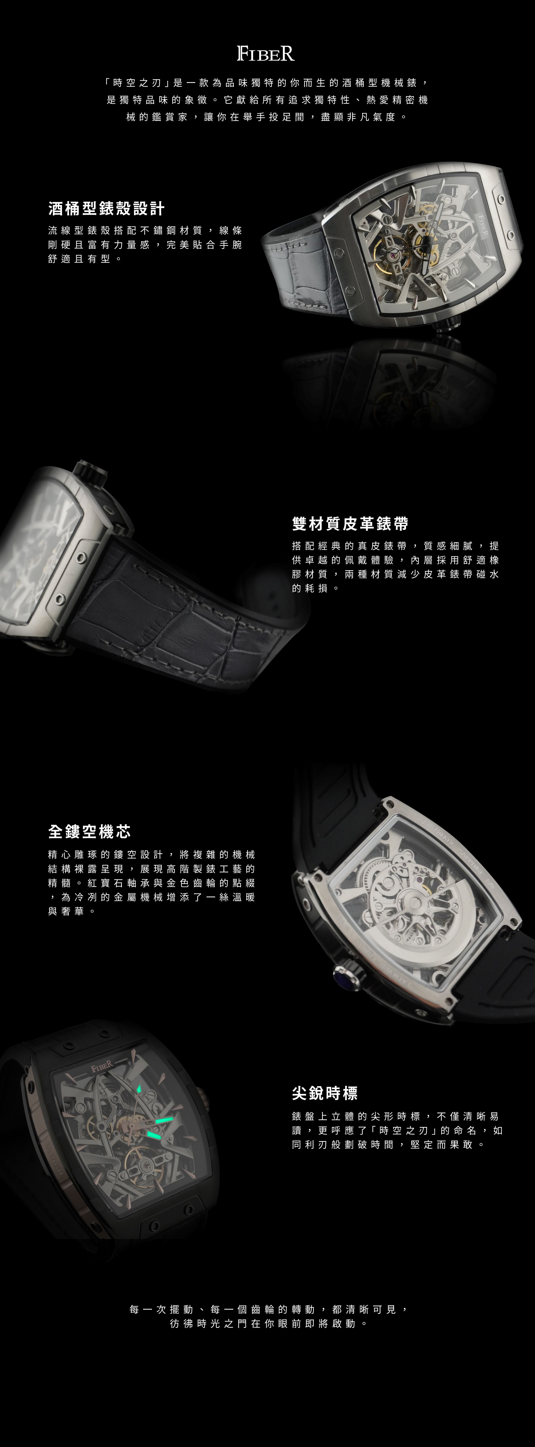 新上市-FIBER|8018.時空之刃|限量機械鏤空錶-灰