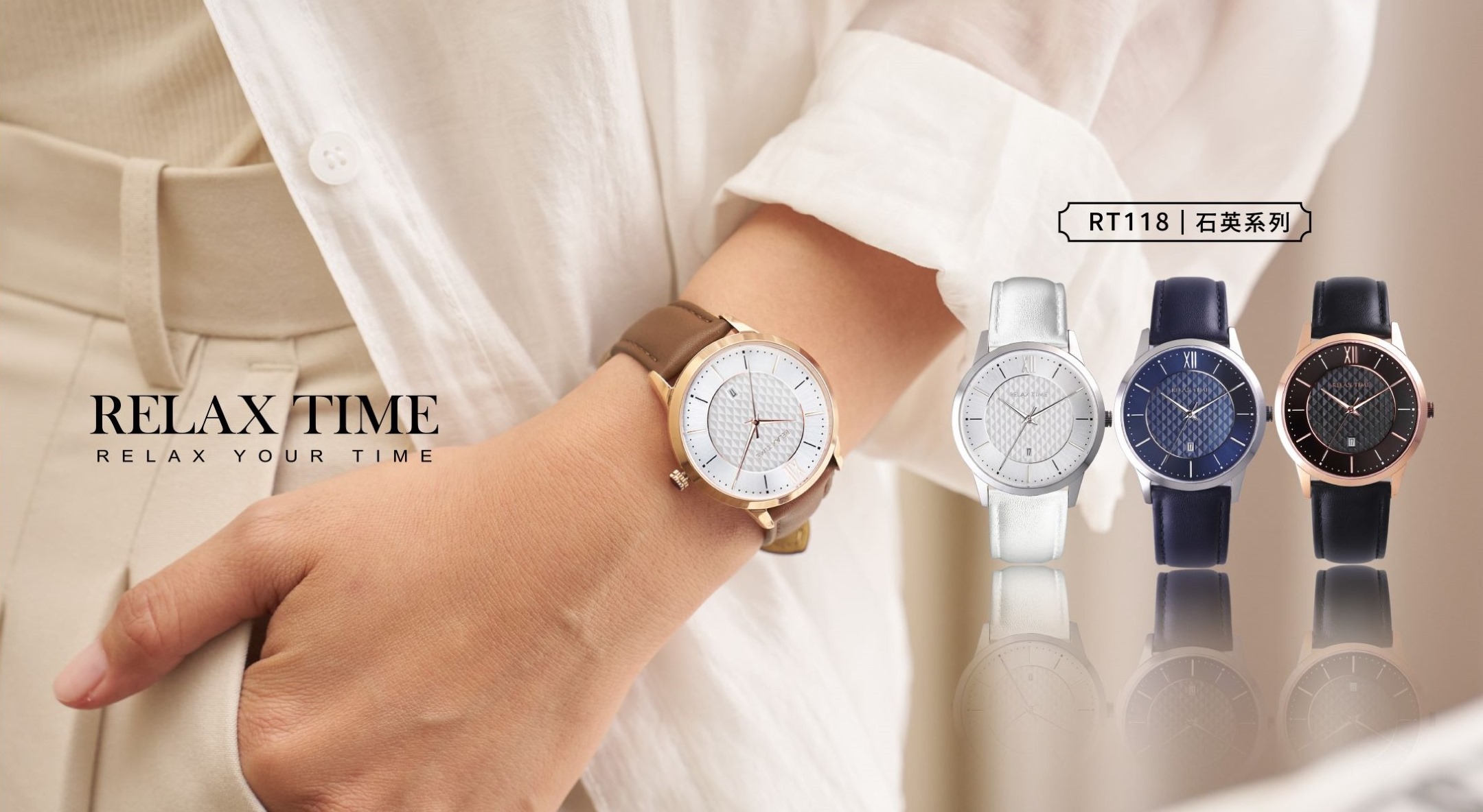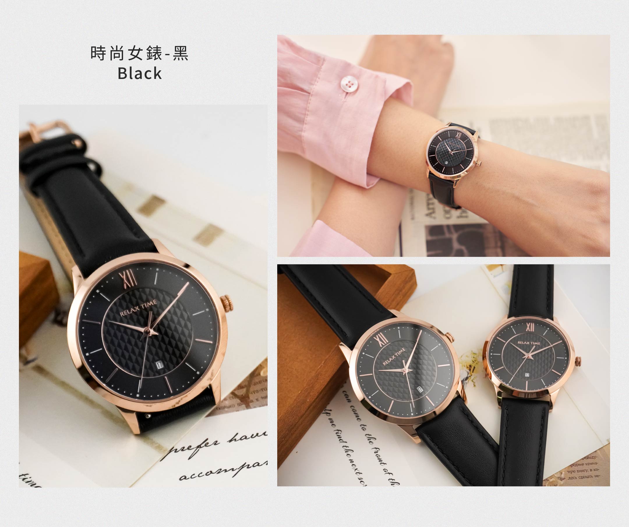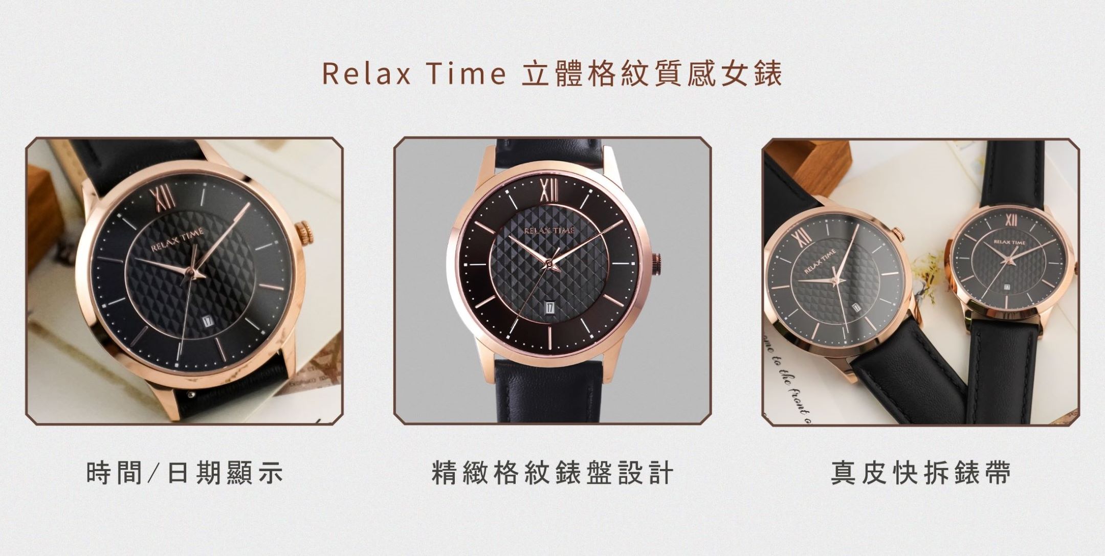 RELAX TIME 石英款 立體格紋時尚女錶 -黑 (RT-118-5L) 36mm