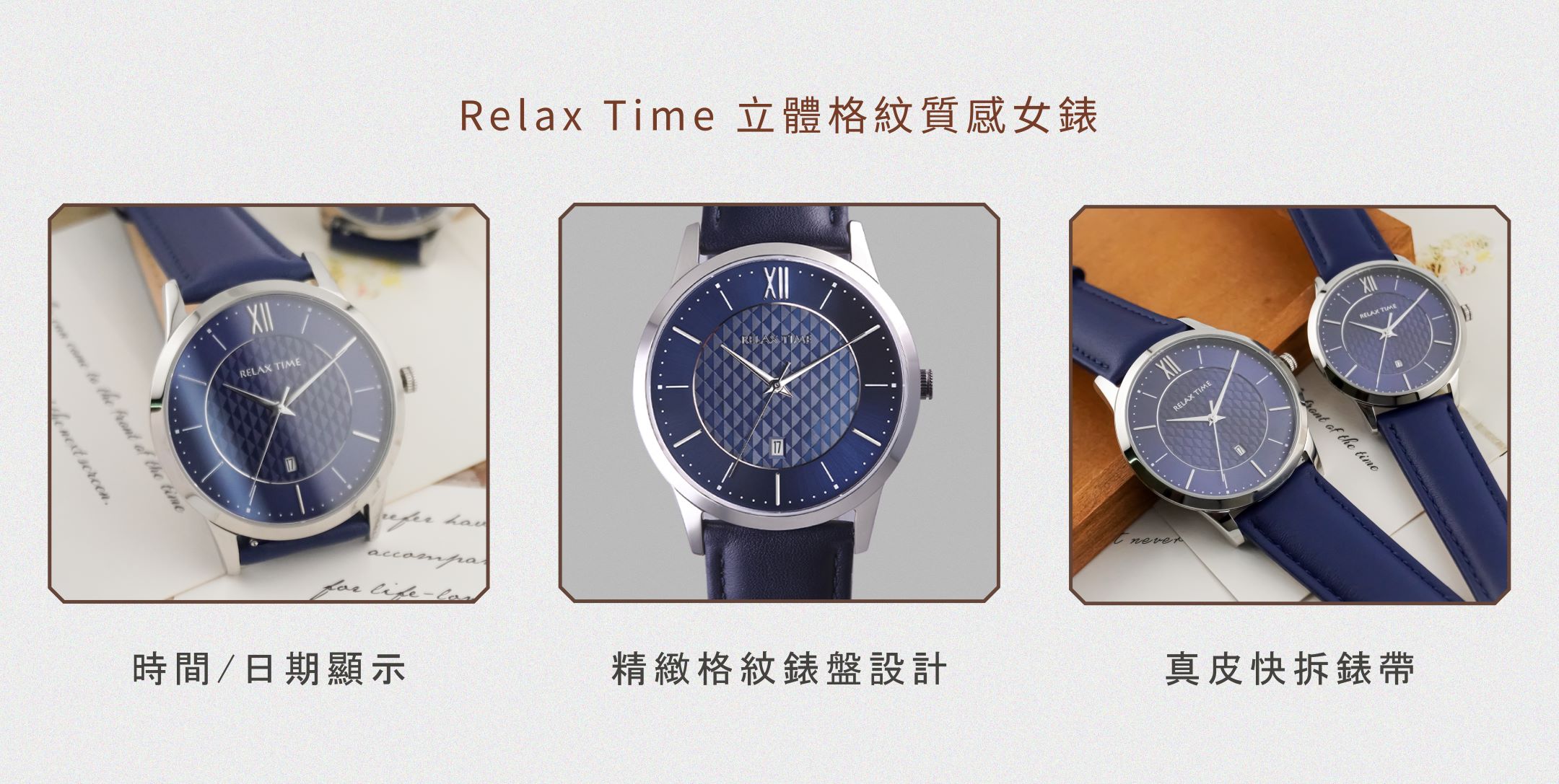 RELAX TIME 石英款 立體格紋 時尚女錶-藍 (RT-118-2L) 36mm | NearMe | 線上送禮平台『獨家支援 收禮者改選禮物』