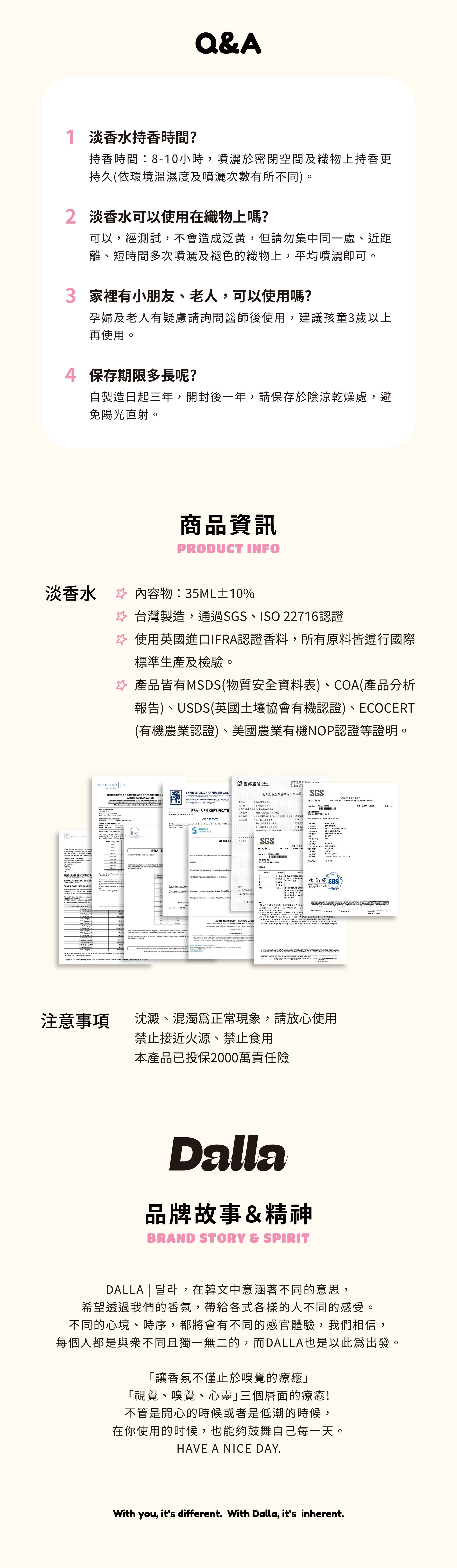 材質:玻璃、液體功能:噴拭於耳後、頸部、手腕等部位,增添香氣、創造美好心情。容量:35ml±10%