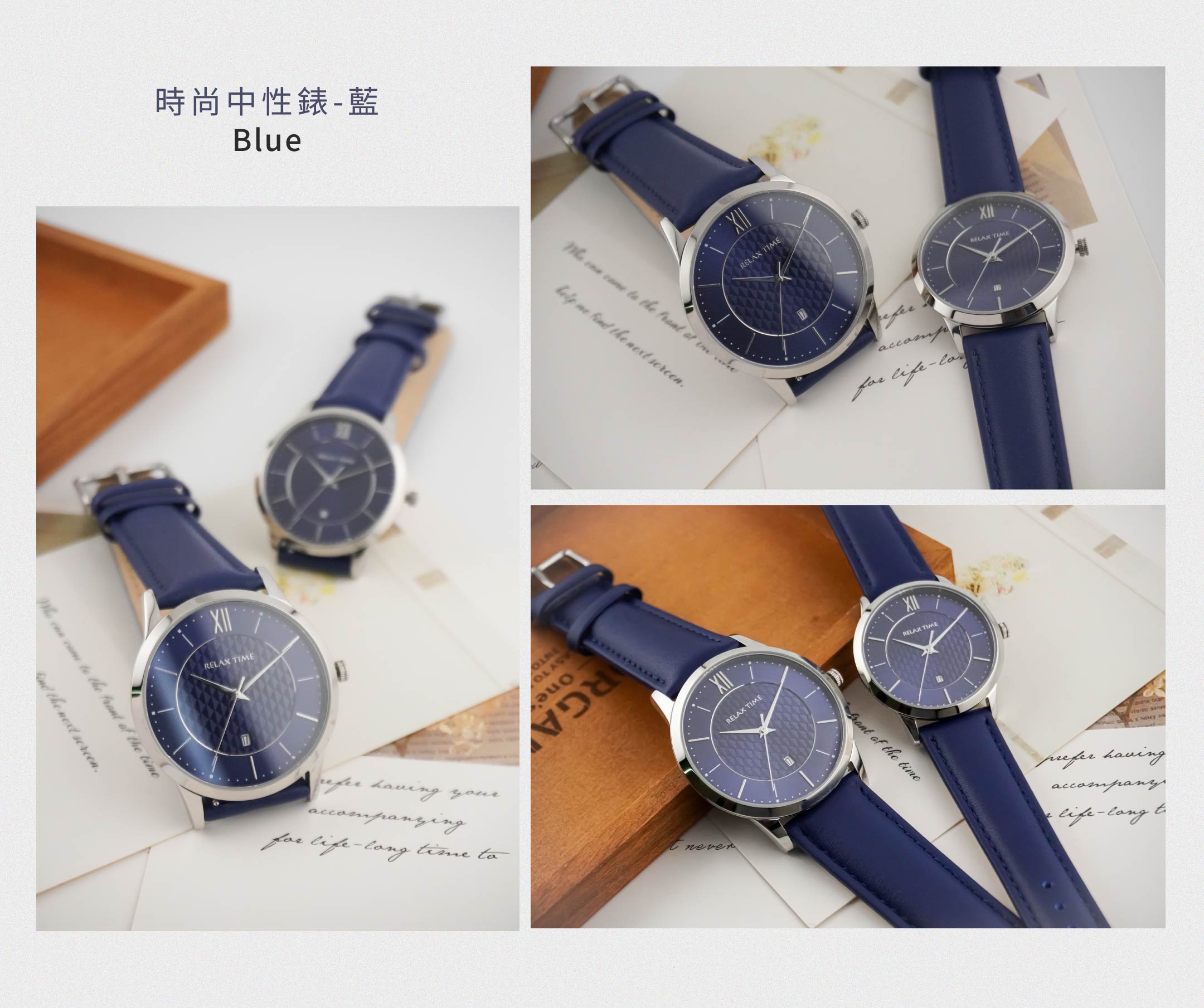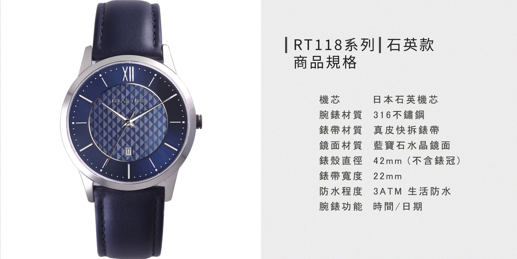 RELAX TIME 石英款 立體格紋時尚男錶 -藍 (RT-118-2M) 42mm
