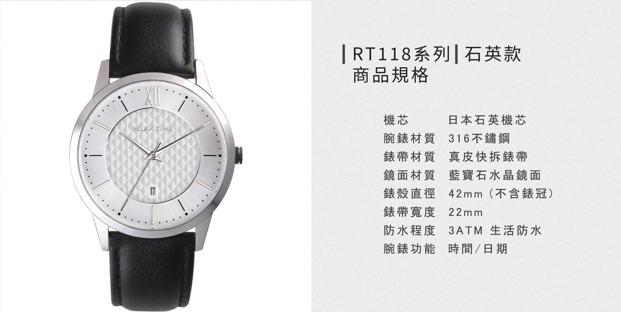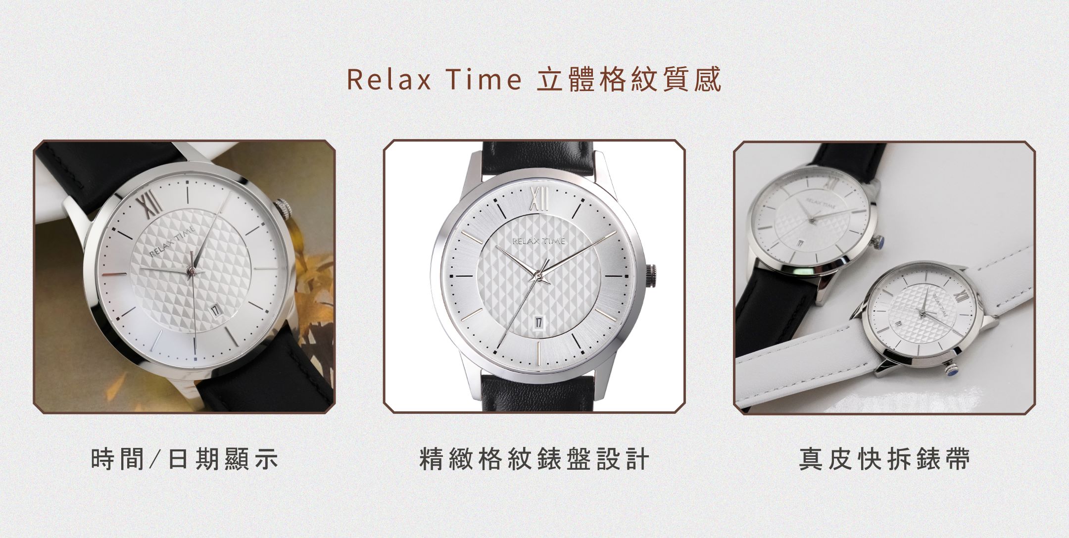 RELAX TIME 石英款 立體格紋時尚男錶 -白×黑 (RT-118-1M) 42mm