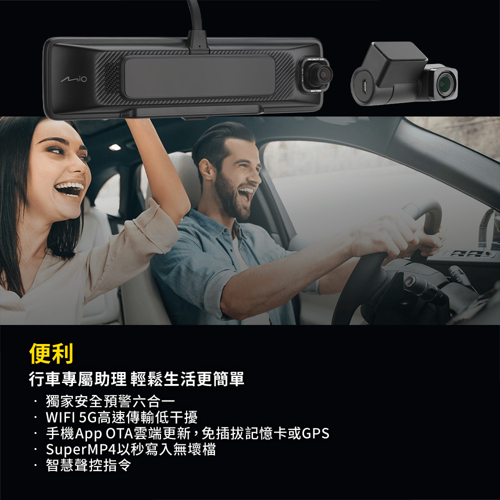 便利行車專屬助理 輕鬆生活更簡單‧ 獨家安全預警六合一‧ WIFI 5G高速傳輸低干擾‧ 手機App OTA雲端更新,免插拔記憶卡或GPS‧ SuperMP4以秒寫入無壞檔‧ 智慧聲控指令