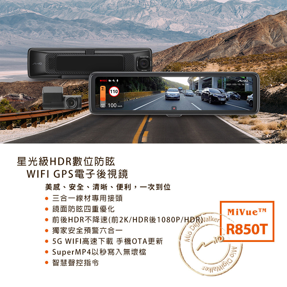 Mio MiVue R850T 後視鏡前後行車記錄器-後鏡頭車內版美感、安全、清晰、便利,一次到位