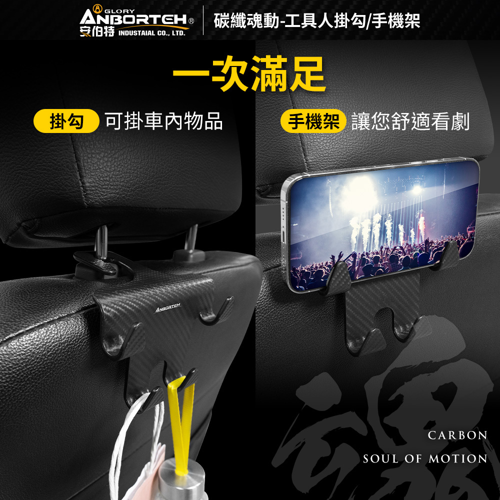 車內收納好物推薦:【安伯特】碳纖魂動 工具人掛勾/手機架既是掛勾也是後座手機支架,一次滿足,有了他,告別車內雜亂,一個抵四個!