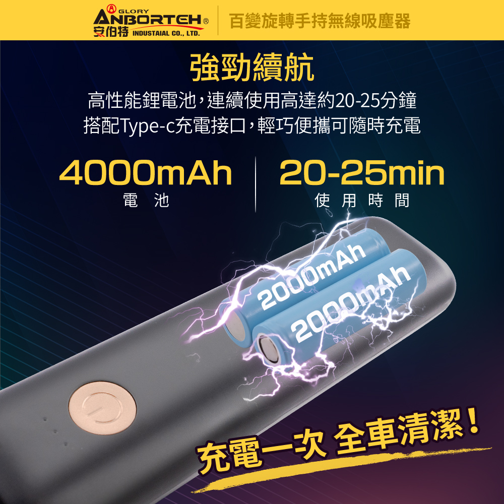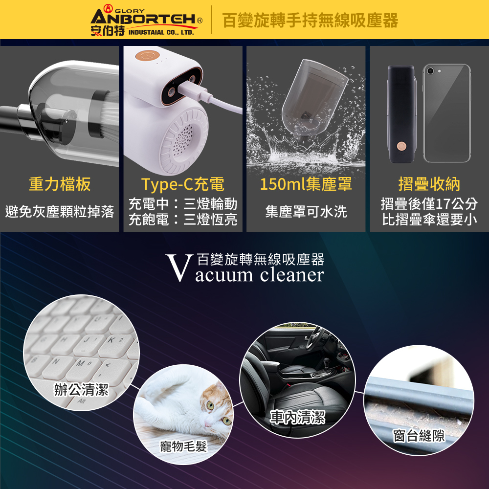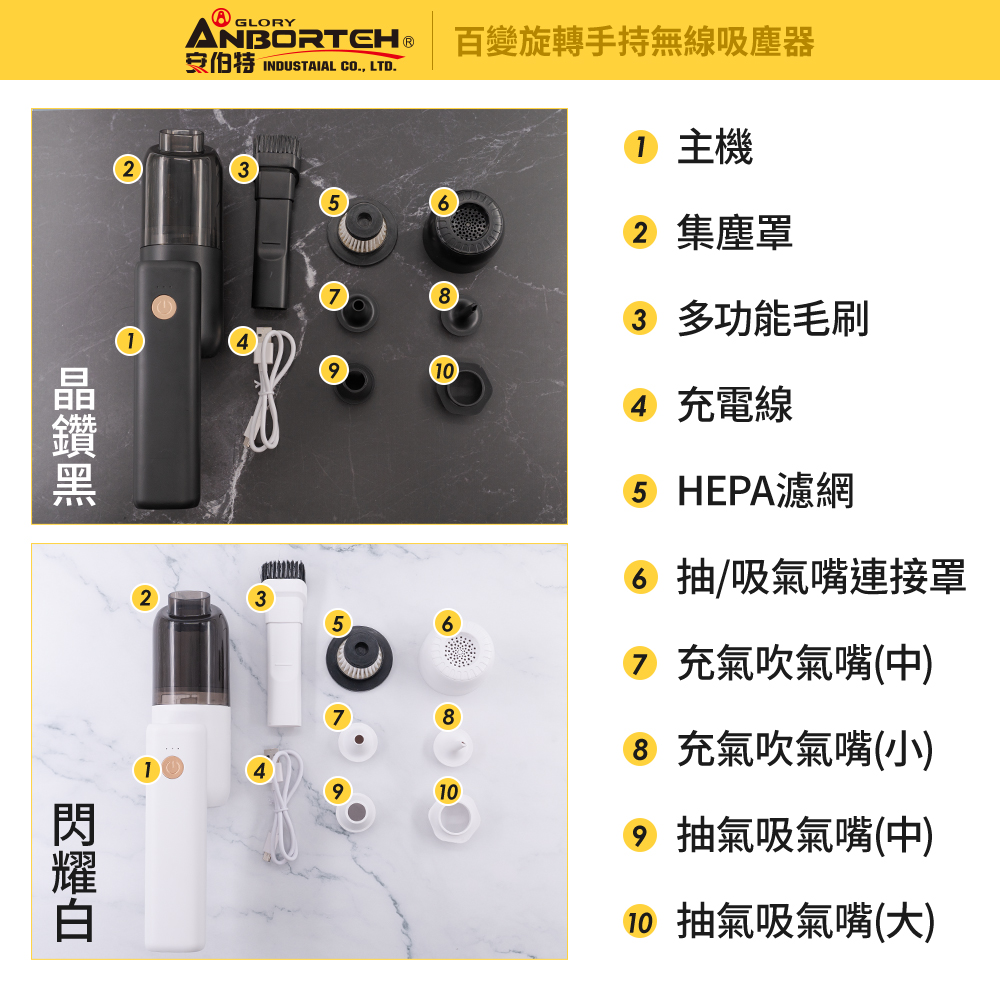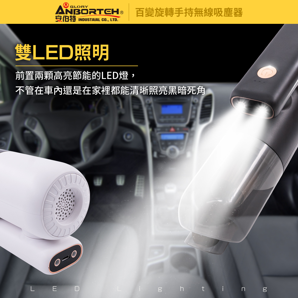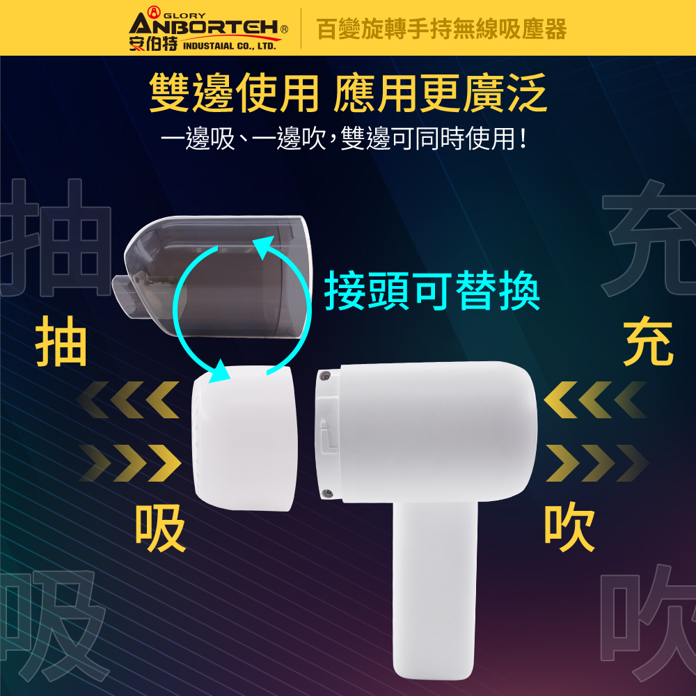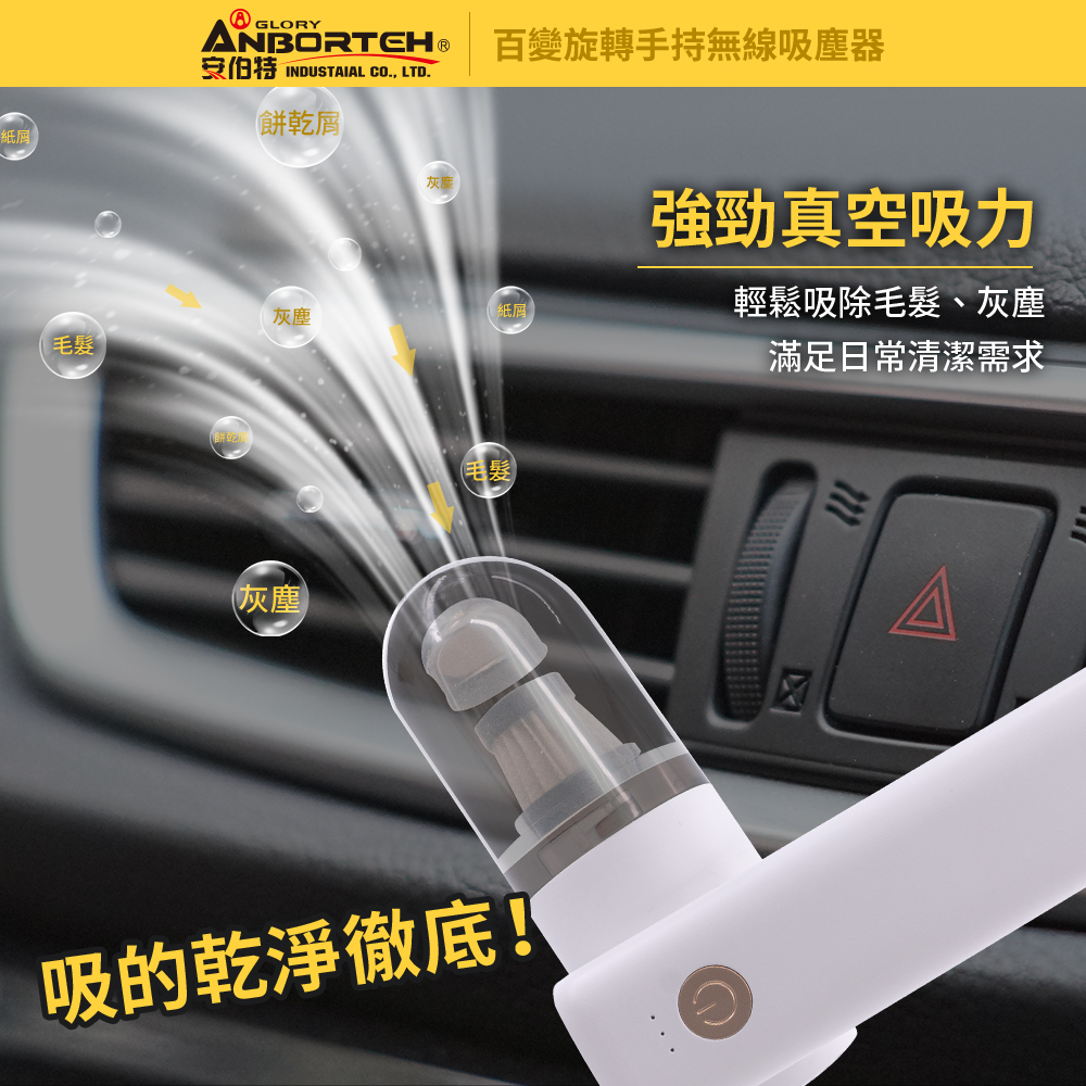 【安伯特】百變旋轉手持無線 車用吸塵器吸塵、充氣、吹風、抽氣、照明、輕量超強六合一,輕巧方便,一機搞定