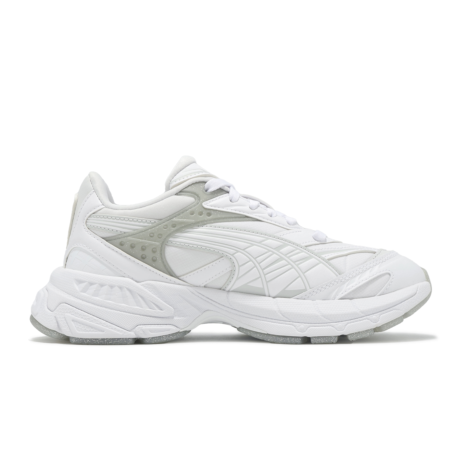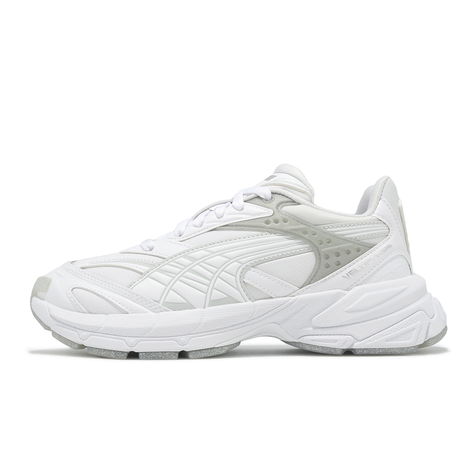 * 從品牌歷史檔案中千禧時代標誌性的 COMPLETE 鞋型中汲取靈感,該系列專為跑步運動而生,VELOPHASIS 在此基礎之上,寄棲於 PUMA 的設計願景,借由 Y2K 的美學視覺語言。