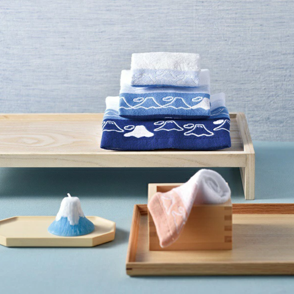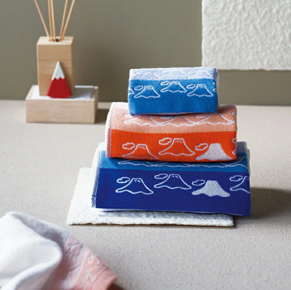 富士山以青、赤雙色呈現,充滿祝福寓意。