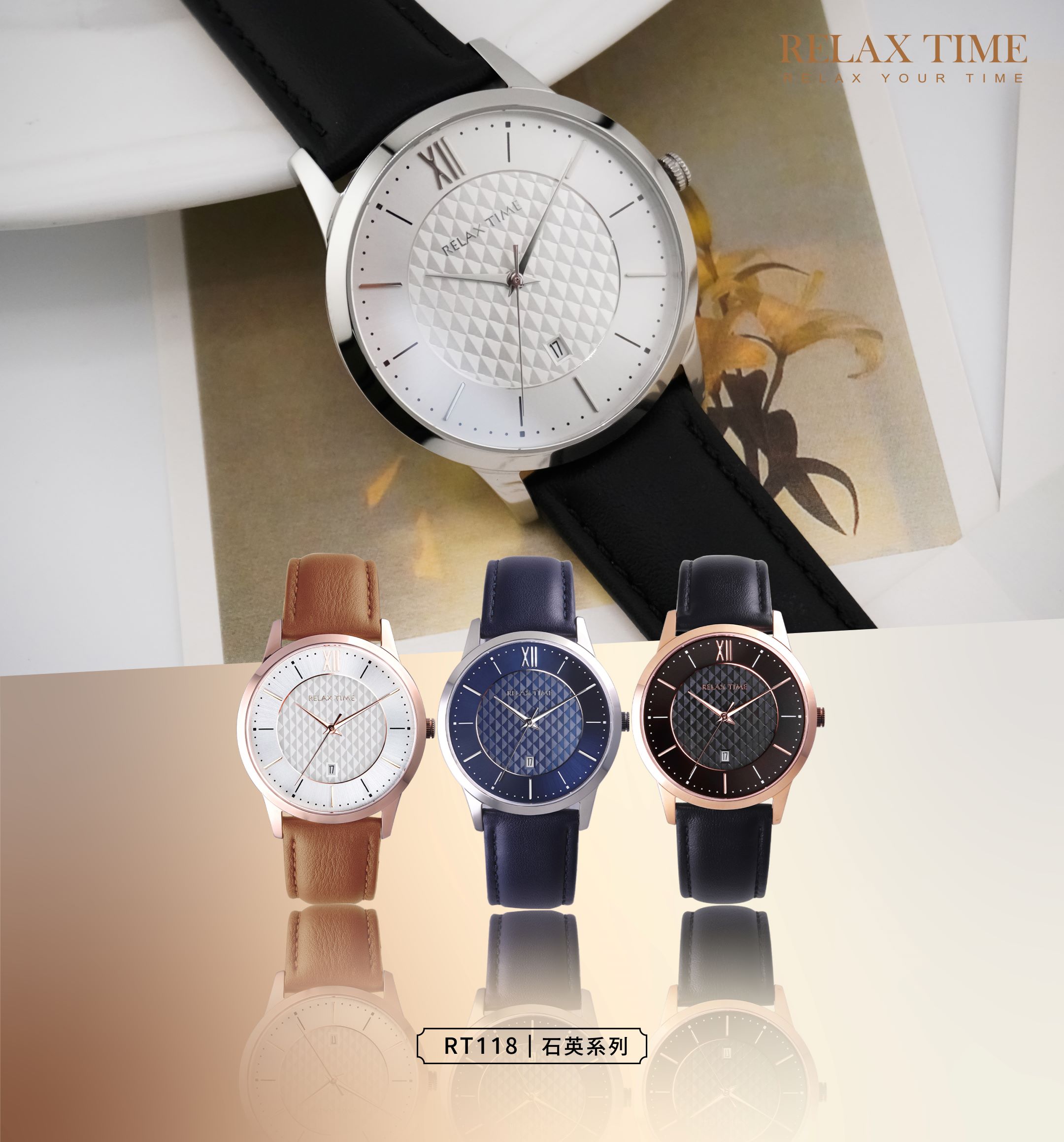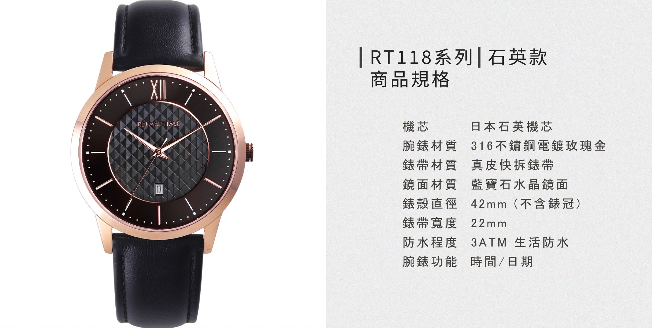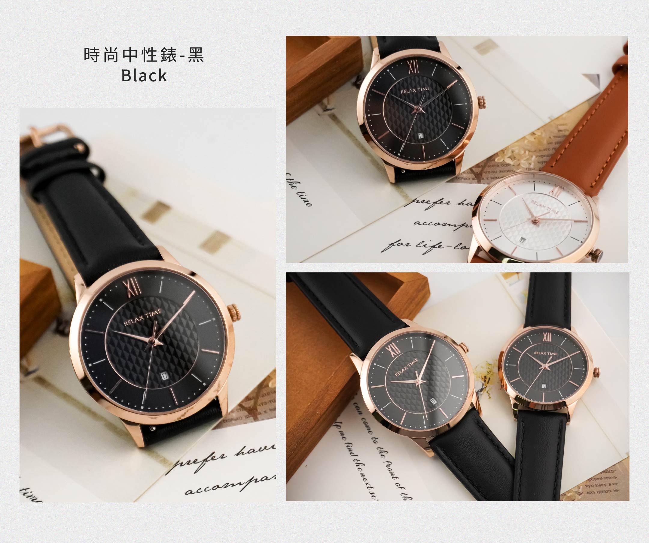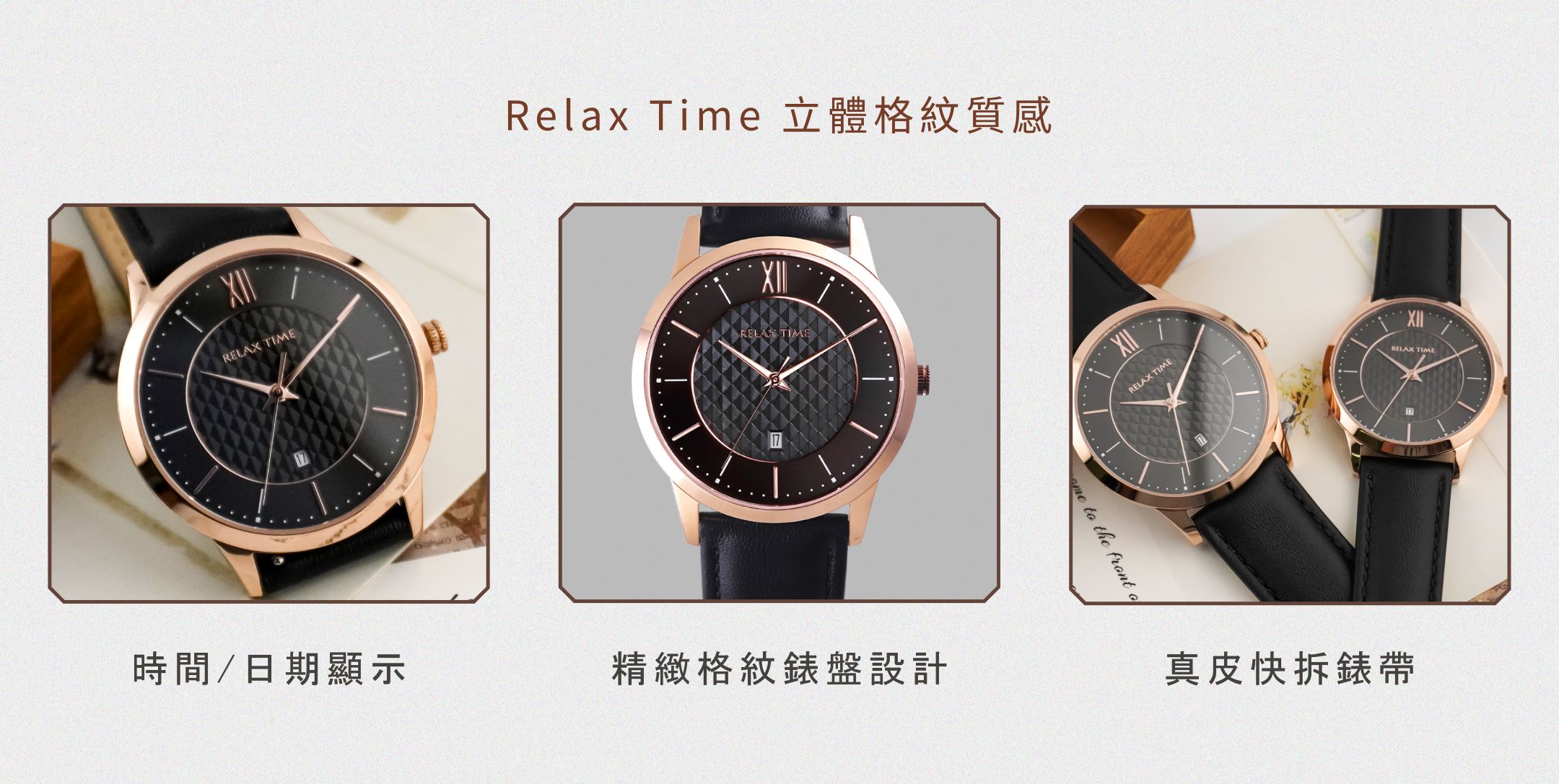 RELAX TIME 石英款 立體格紋時尚男錶 -黑 (RT-118-5M) 42mm