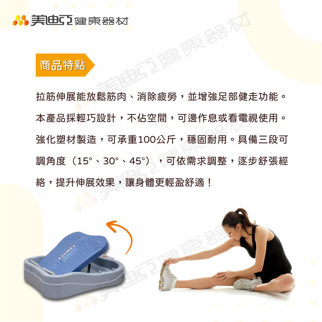 .可漸進式鬆弛筋肉,舒張足部經絡功能、增強足部健走功能