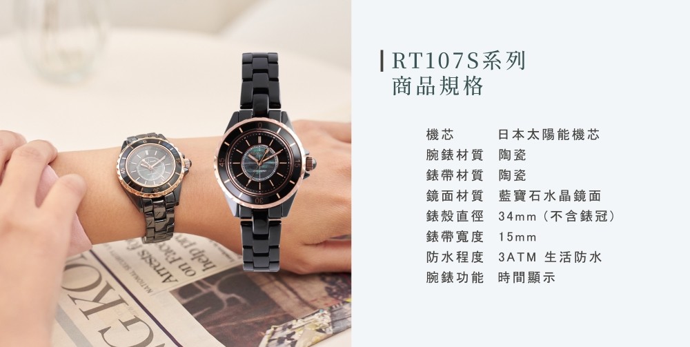 RELAX TIME |太陽能|時光御璽陶瓷系列-黑玫瑰金 (RT-107S-5BRG)