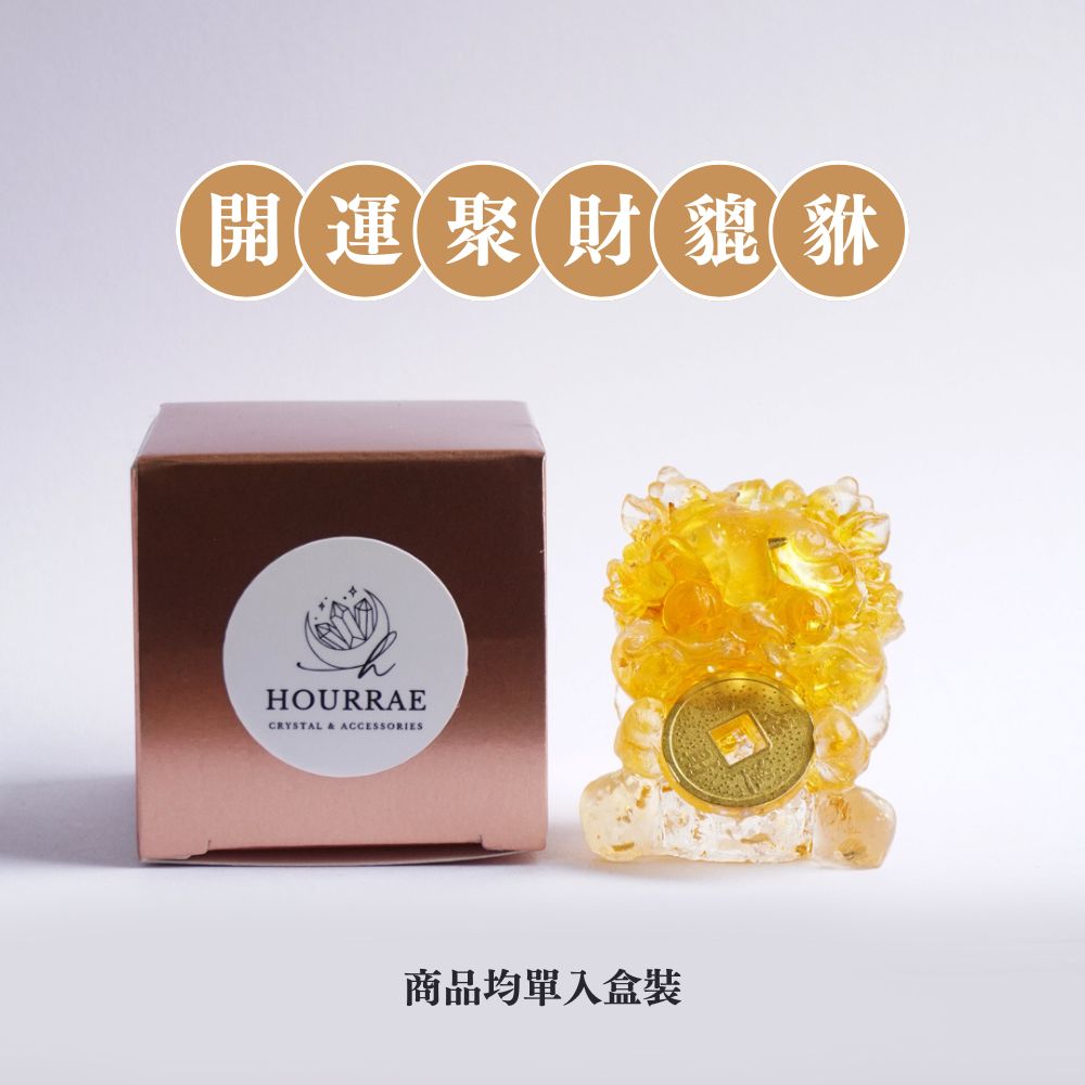 Hourrae荷萊 招財 金箔水晶貔貅 吞金獸 天然水晶 水晶碎石 滴膠 一桶金