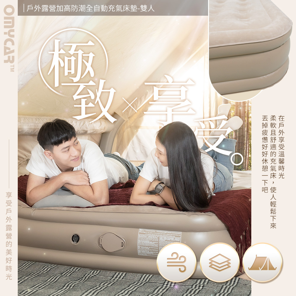 【OMyCar】加高全自動充氣床-雙人全自動充氣,省時省力超便利,戶外露營、居家使用、旅館加床,亦可當居家備用床給來訪客人使用。