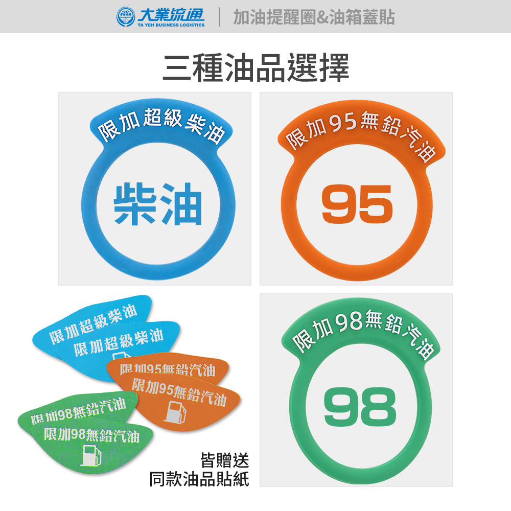 油品選擇 : 95/98/柴油,三種油品標示可選,皆贈油品貼紙立體設計 : 文字立體設計,不易磨損優質材質 : 柔韌耐用,不易斷裂更耐用