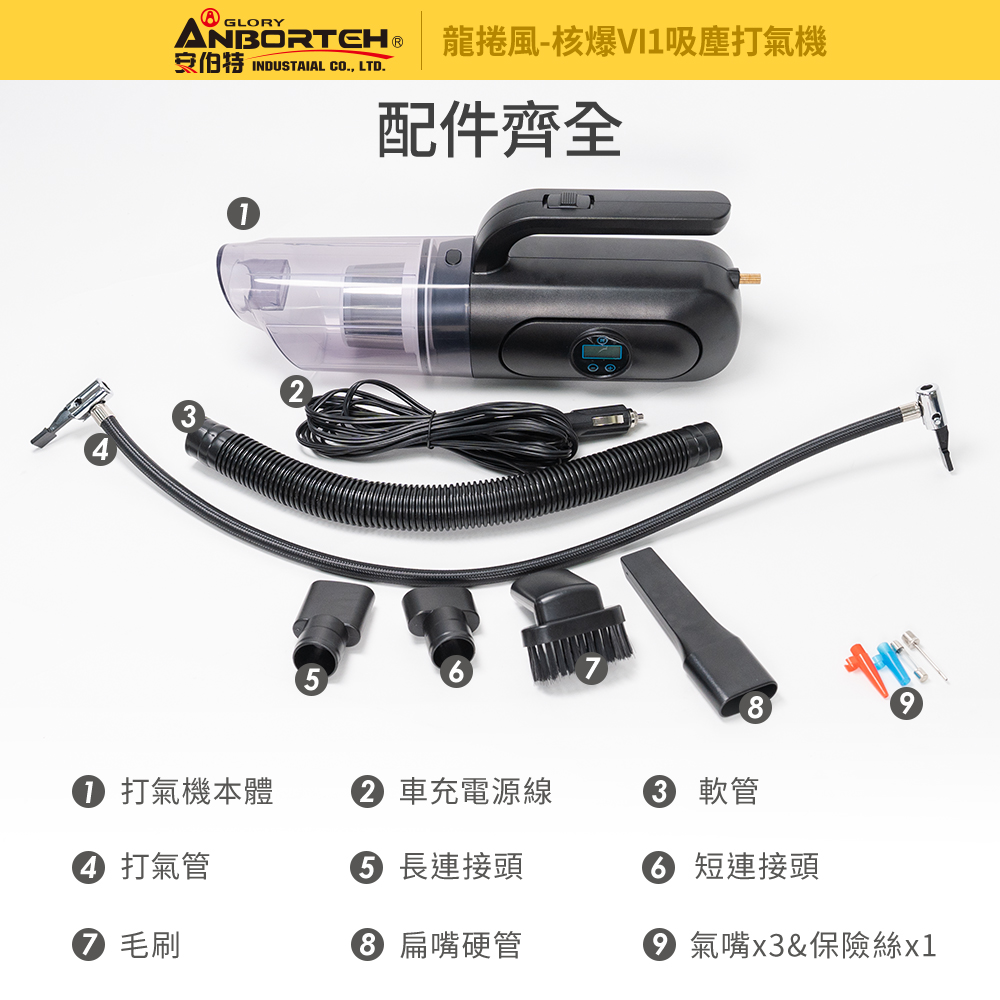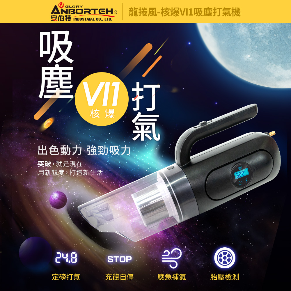 【安伯特】核爆VI1吸塵打氣機輪胎打氣、高效吸塵、檢測胎壓一次滿足您的需求!