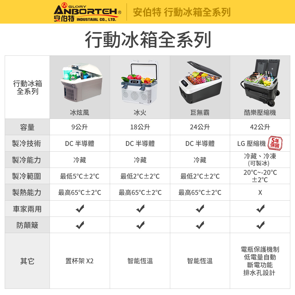 商品規格品名:【安伯特】酷樂壓縮機行動冰箱42L型號:ABT-E082功率:60W電壓:DC 12V/24V容量:42L材質:ABS、PE、壓縮機尺寸:62x41x46cm ±5%重量:18.14kg ±5%保固範圍:新品暇疵保固期限:壓縮機保固5年,主機保固2年產地:中國(台灣監造)