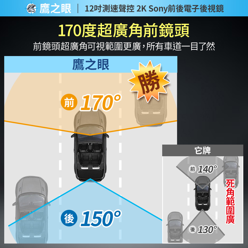 【鷹之眼】12吋測速聲控 2K Sony前後電子後視鏡-附64G卡TA-B121