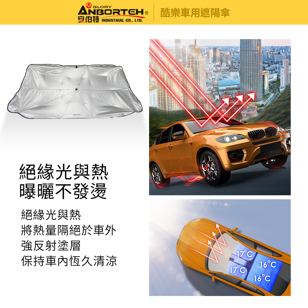 商品規格品名:【安伯特】酷樂車用傘式遮陽傘型號:ABT-A135材質:聚酯纖維、鐵傘骨數量:10骨展開尺寸:760x1380mm ±5%重量:402g ±5%保固範圍:新品暇疵產地:中國(台灣監造)