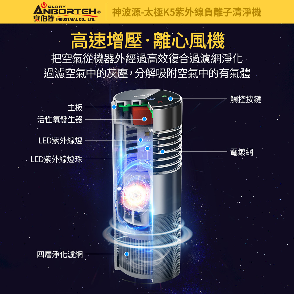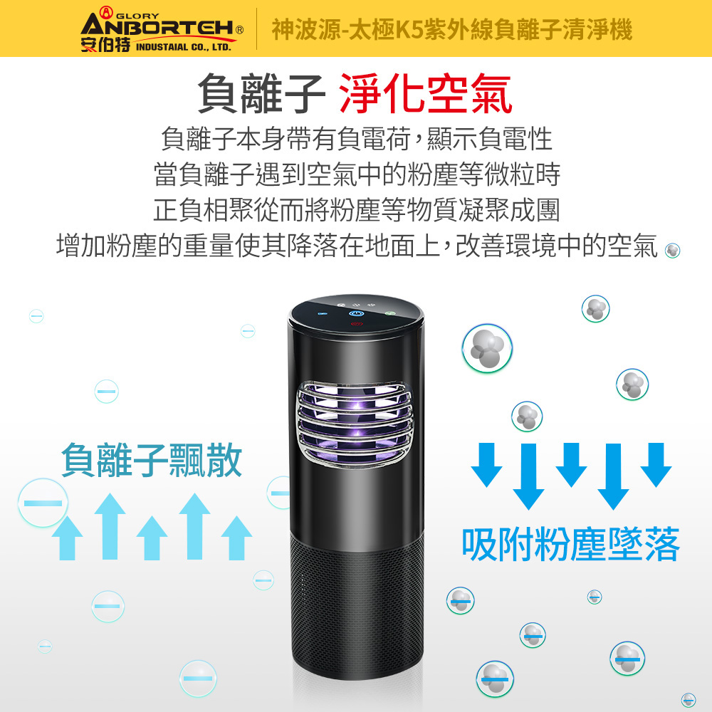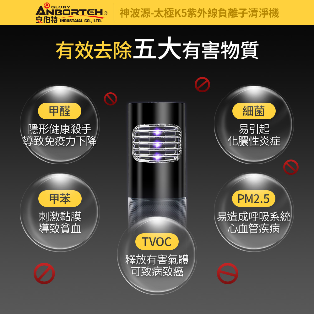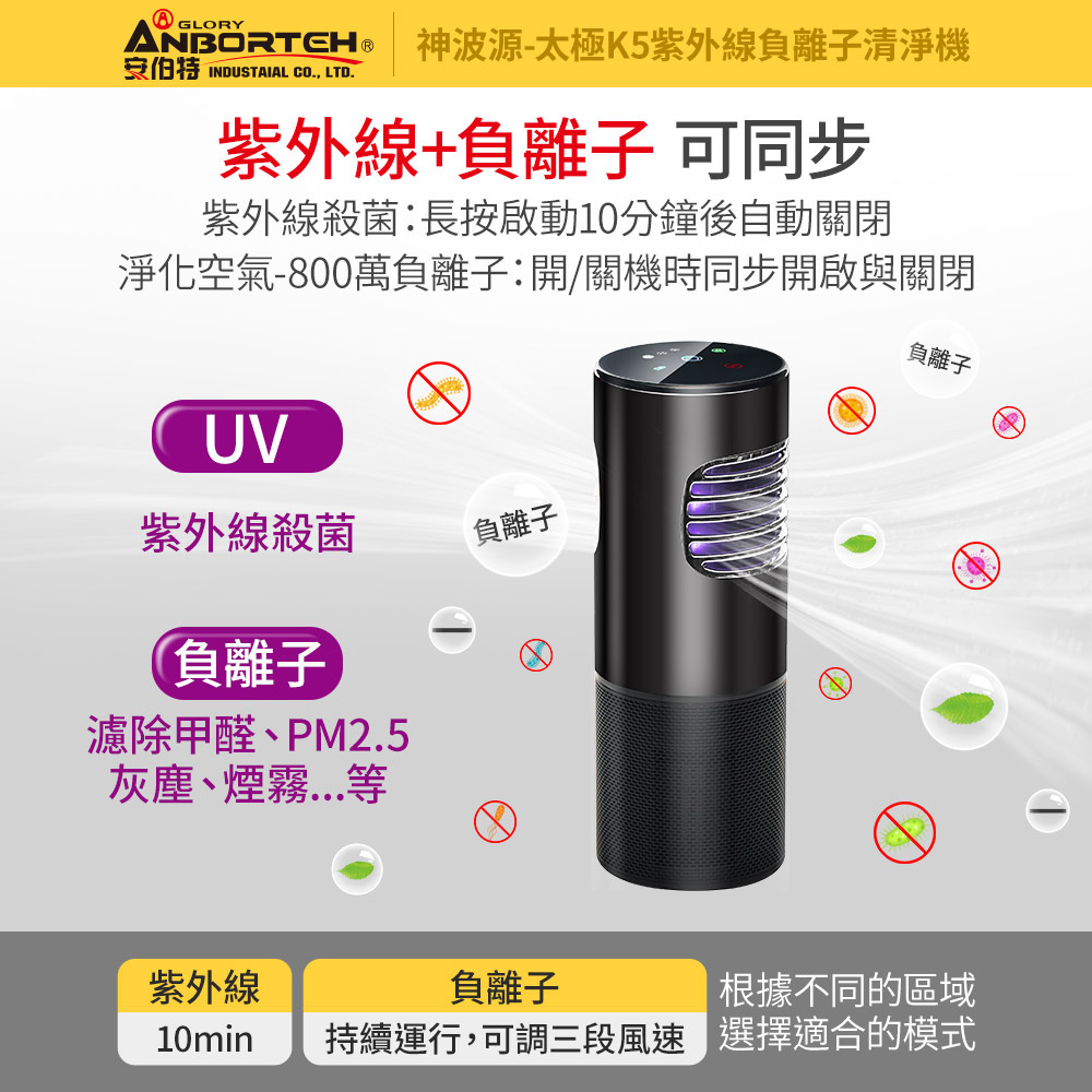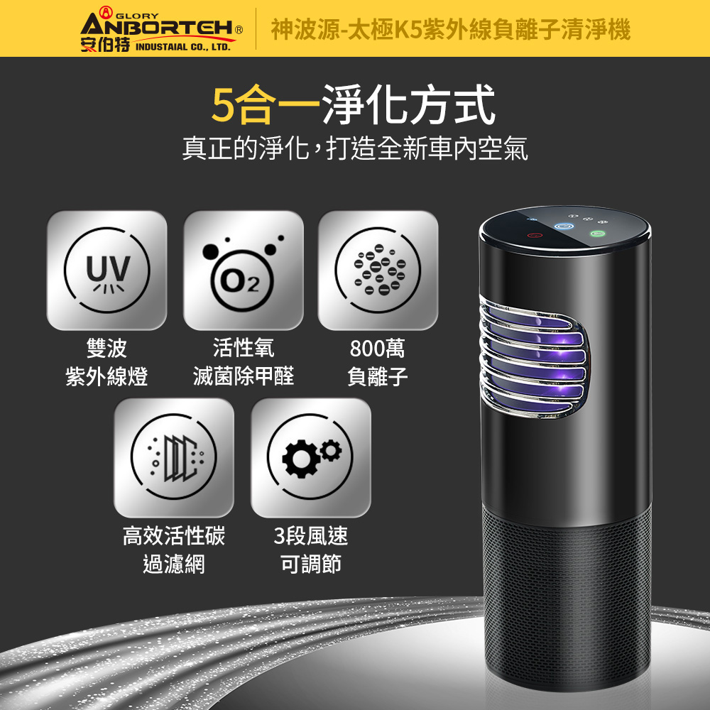 【安伯特】神波源 太極K5紫外線負離子 車用空氣清淨機5合一淨化,殺菌 滅菌 除塵 除味 淨化保護您和家人的健康,給您全方位呵護
