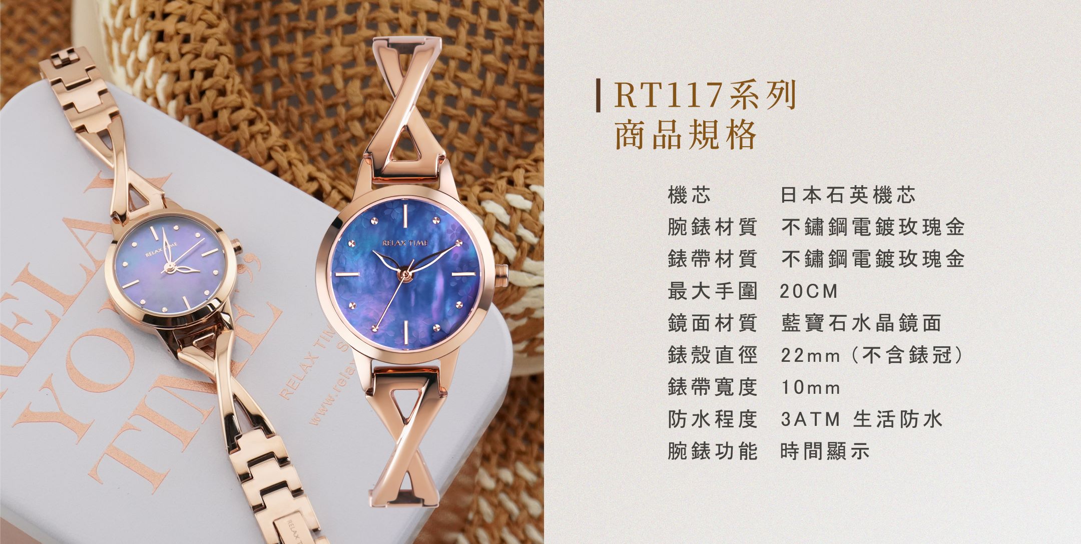 RELAX TIME 時光漫舞 女錶 玫瑰金×藍貝殼 (RT-117-3)